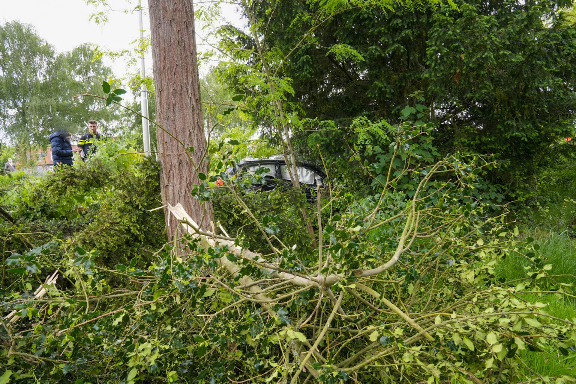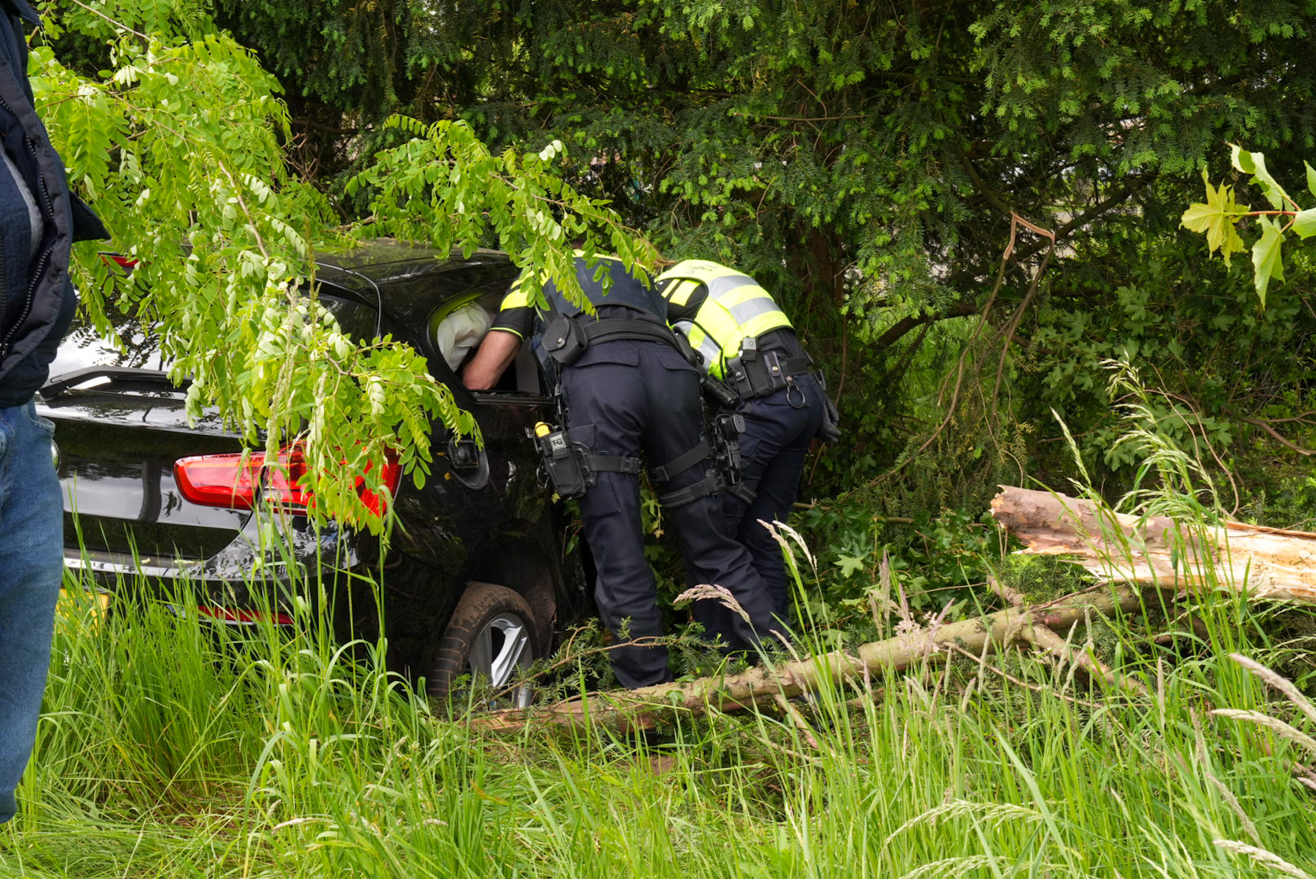 Waardoor hij van de weg raakte is niet bekend. De auto is total loss. De politie doet onderzoek.