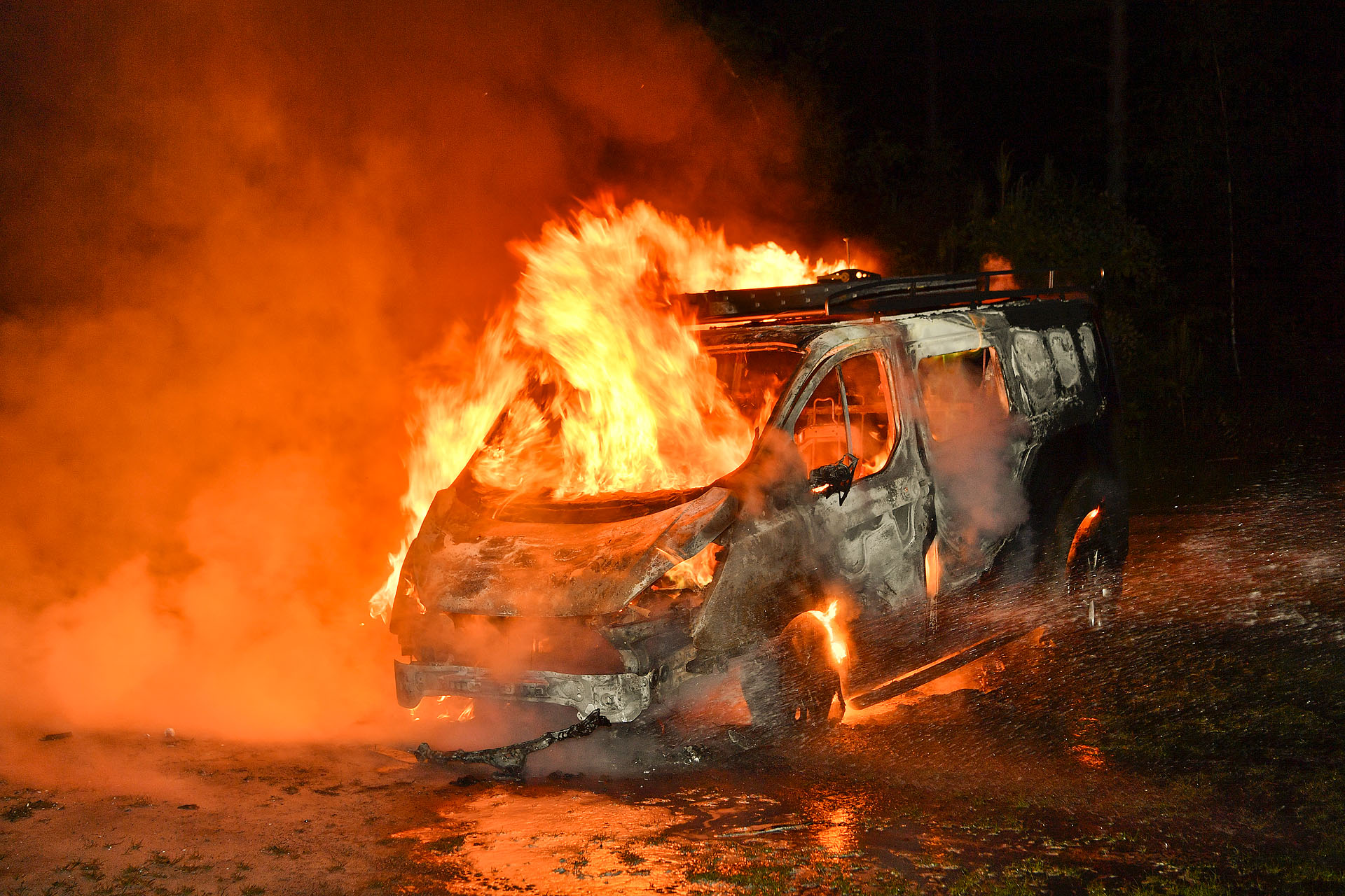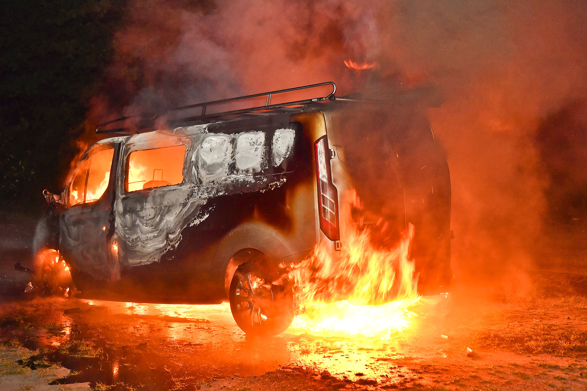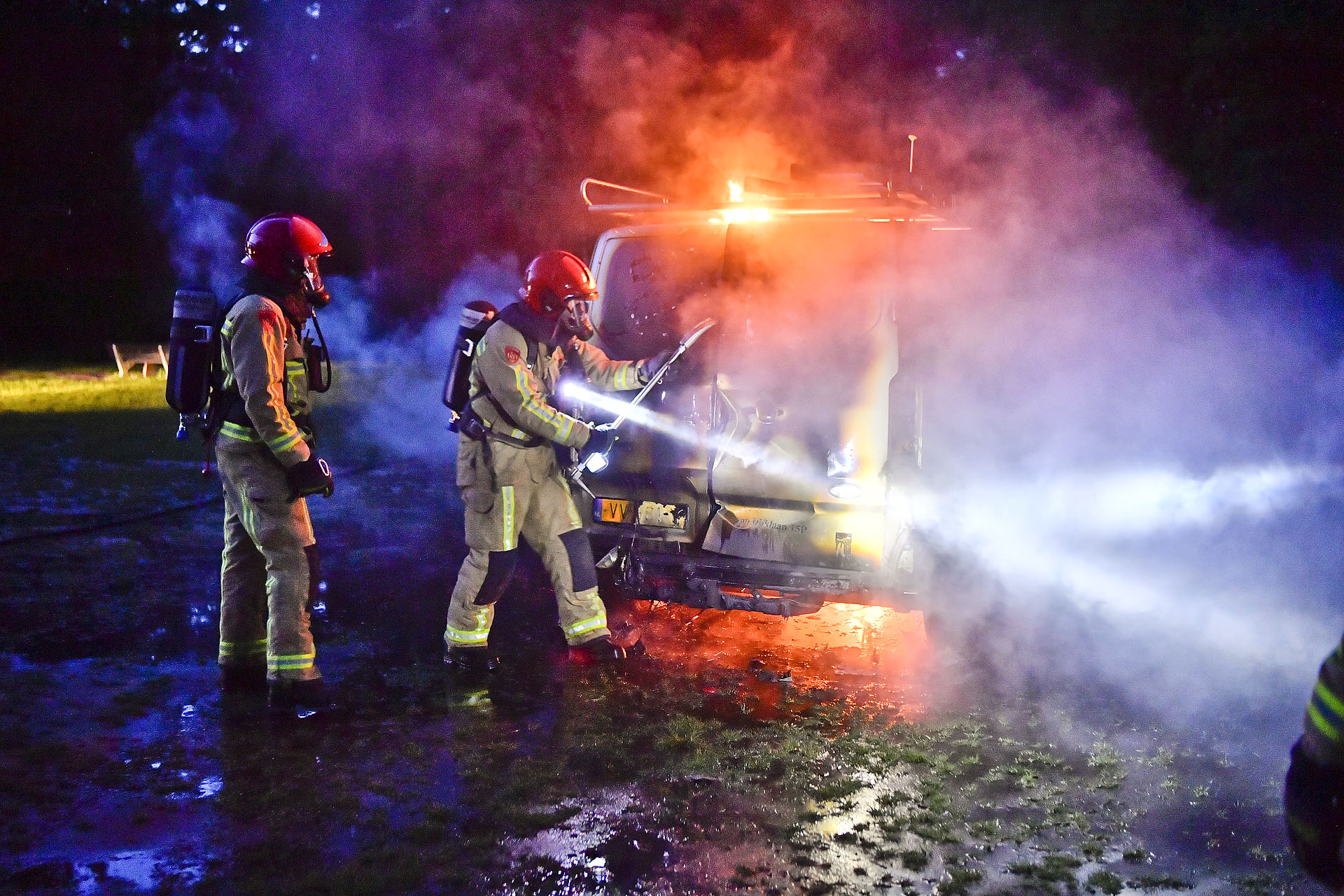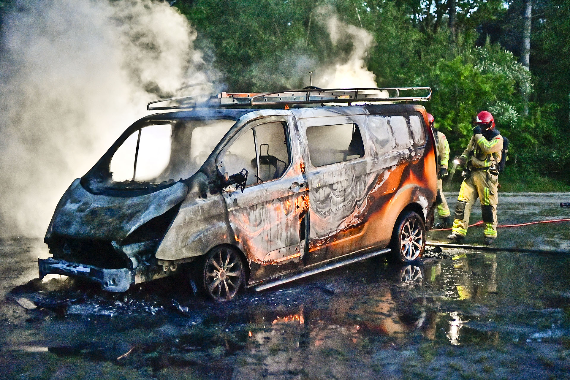 Rond 04:14 uur kwam de melding van de autobrand binnen. Ter plekke bleek een bestelbus volledig in lichterlaaie te staan op een terrein waar mensen weleens hun tent of caravan testen voor vakantie. De bestelbus brandde volledig uit.