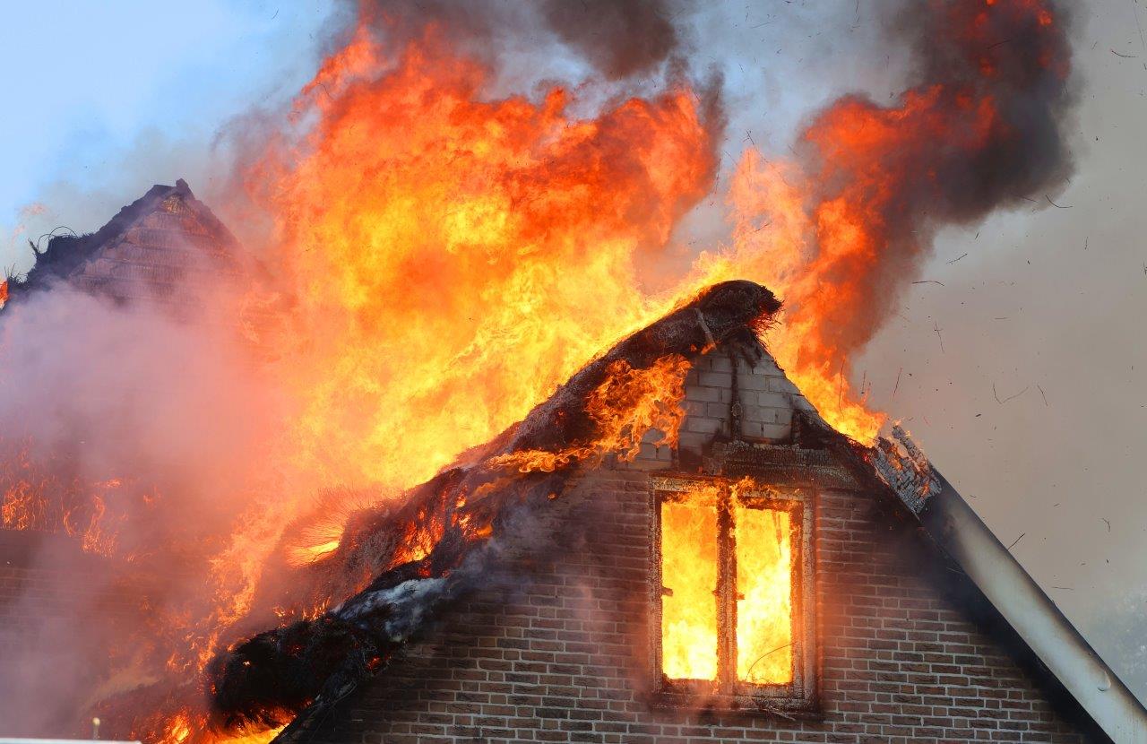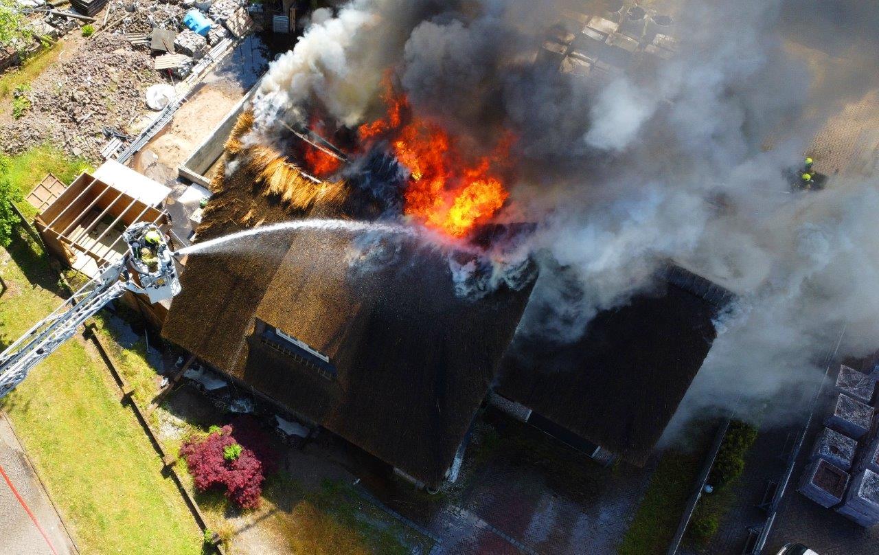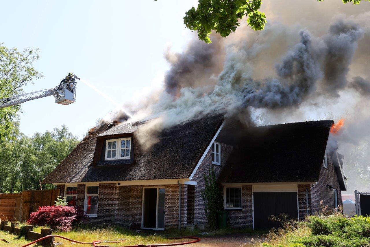 FOTO UPDATE: Grote brand in woning met rieten dak