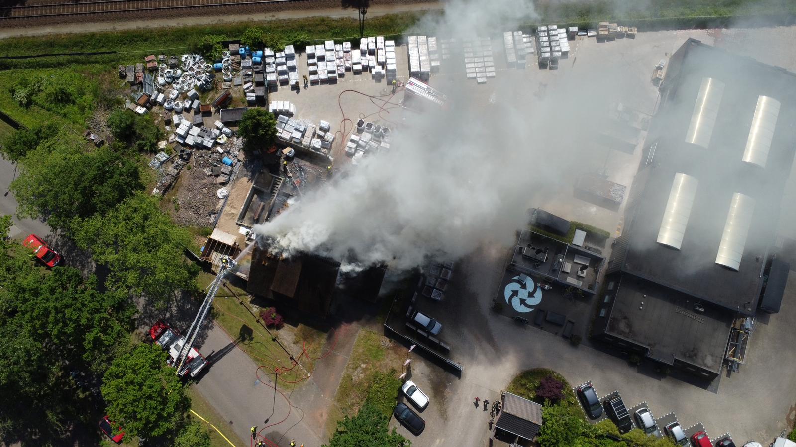 De brandweer is onder meer met een hoogwerker ter plaatse om de brand te bestrijden.