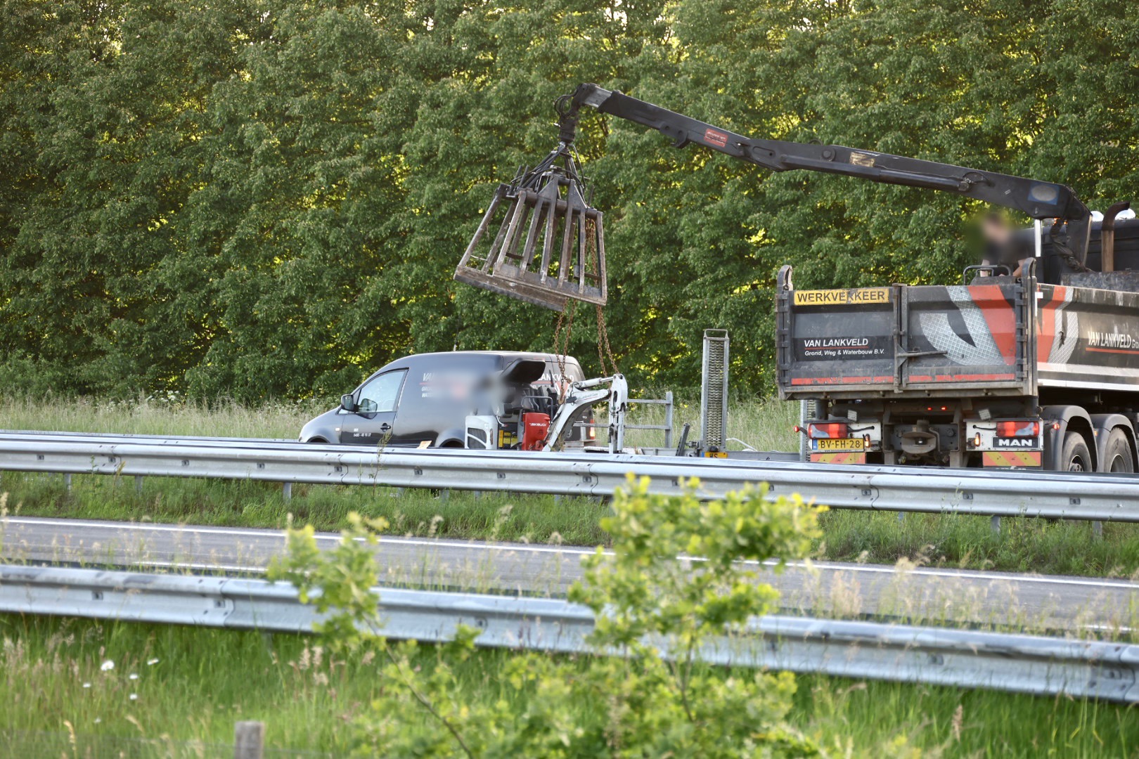 Ter hoogte van Cuijk viel de minigraver door onbekende oorzaak van de aanhanger. Het bedrijf waarvan de minigraver van is, kwam zelf naar de plaats van het ongeluk om de minigraver te bergen. Een bergingsbedrijf werd vervolgens ingeschakeld en heeft de aanhanger geborgen.
