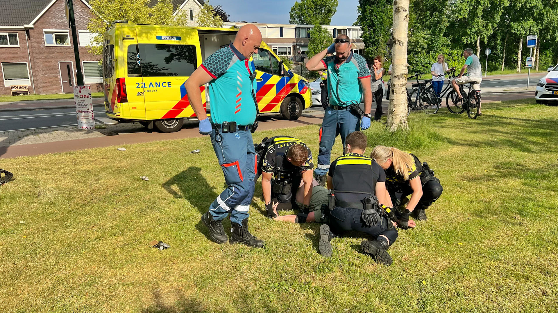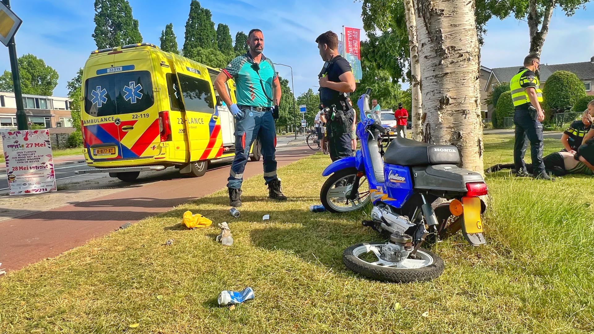 De brommer van de man raakte aanzienlijk beschadigd als gevolg van de valpartij. Het exacte letsel van de man is op dit moment niet bekend.