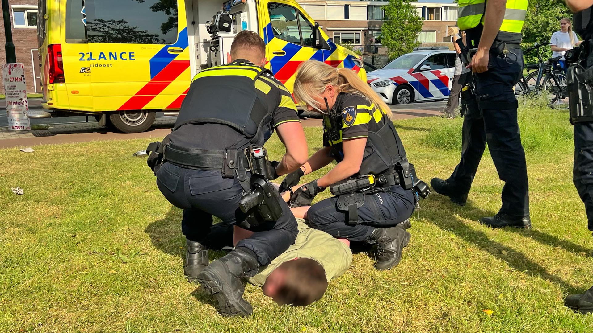 Bij aankomst van de politie keerde de man zich tegen de agenten en zelfs tegen een persfotograaf die aanwezig was. De agenten moesten de man uiteindelijk arresteren en hem onder begeleiding naar het ziekenhuis in Veldhoven brengen. Ook een familielid keerde zich tegen de politie.