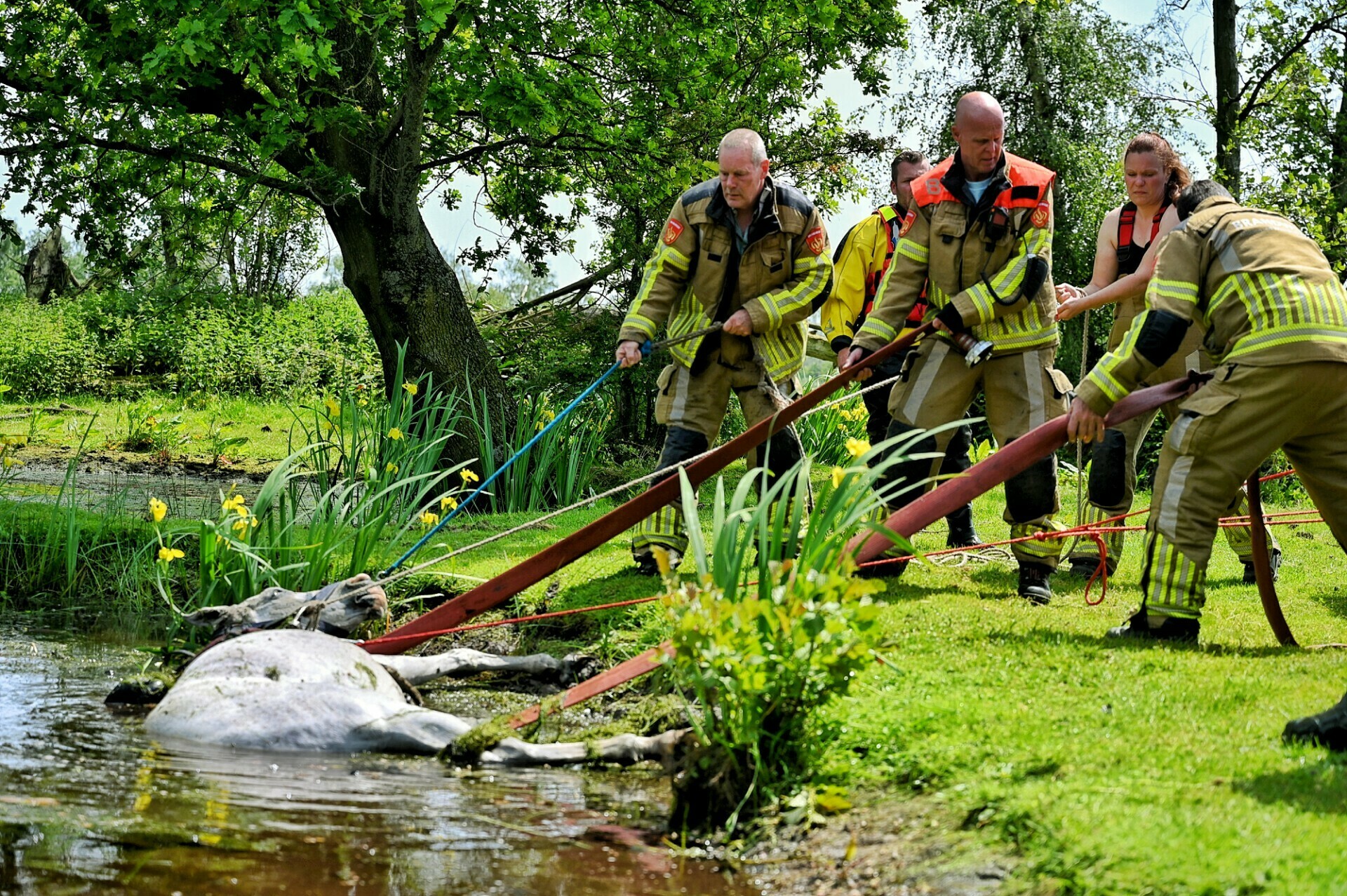 Geplaatst op 28 mei 2023, om 16:59 uurMOERGESTEL – Op zondagmiddag moest de brandweer uitrukken om een paard te redden dat in het water was gevallen bij een huis aan de Reedijk in Moergestel. Het paard was niet in staat om op eigen kracht weer overeind te komen.