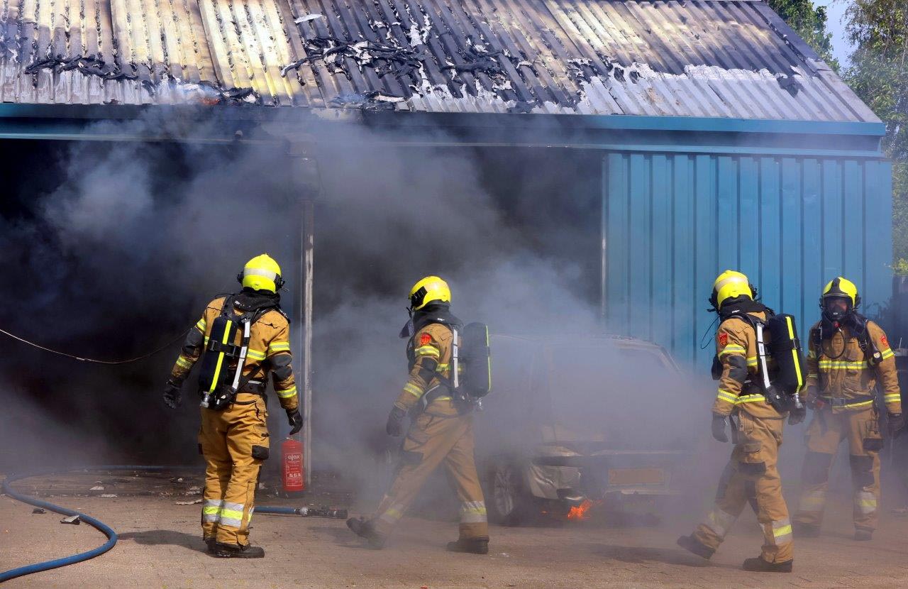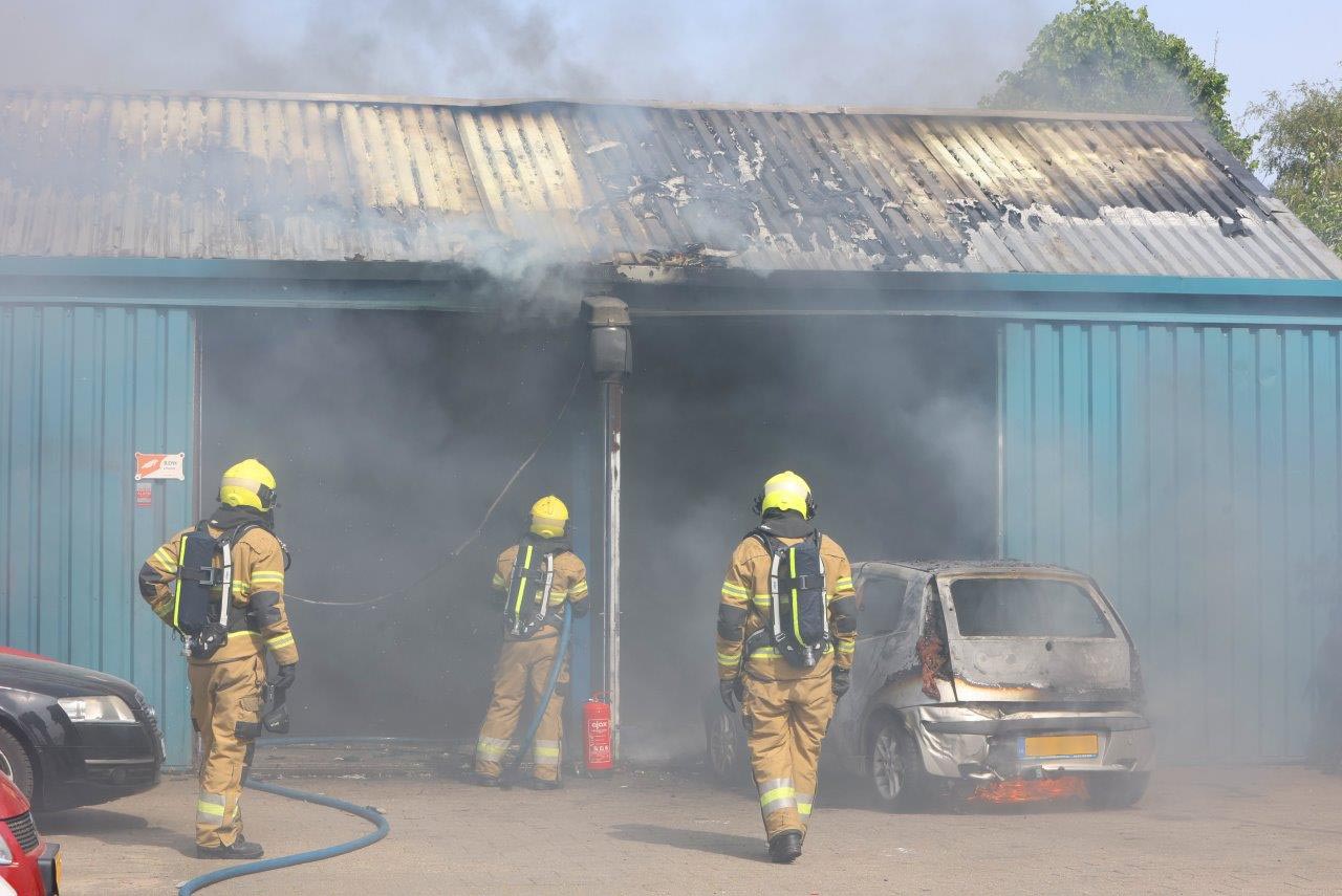 De brandweer kon voorkomen dat de brand oversloeg naar naastgelegen panden door het brandende voertuig uit de garage te halen.