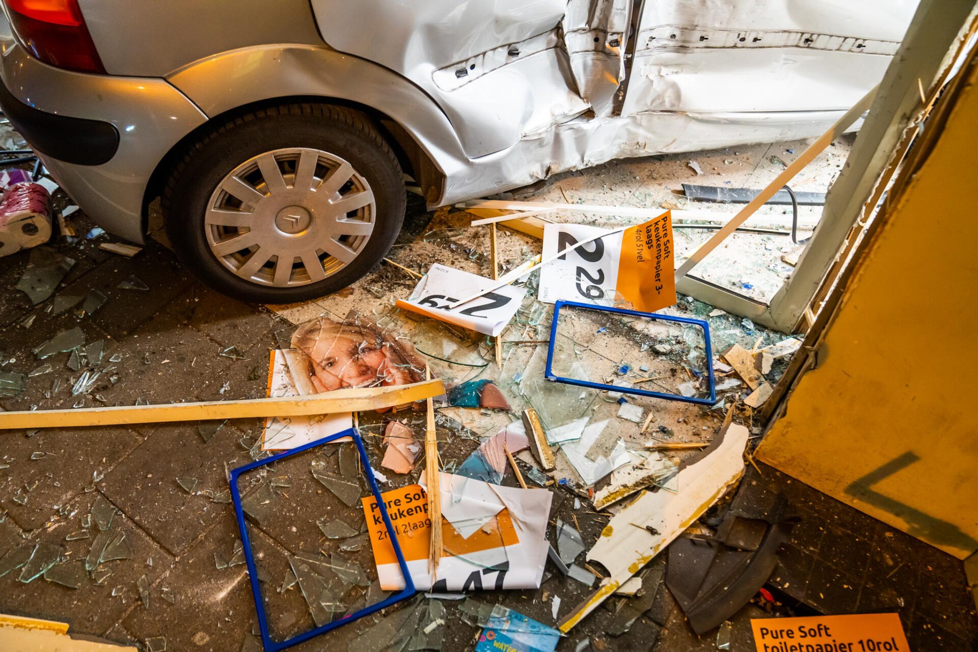 De politie kreeg een melding van een inbraakalarm, al snel bleek het te gaan om een ongeval waar een auto de action binnen was gereden. De politie, brandweer en ambulance kwamen met spoed ter plaatse.