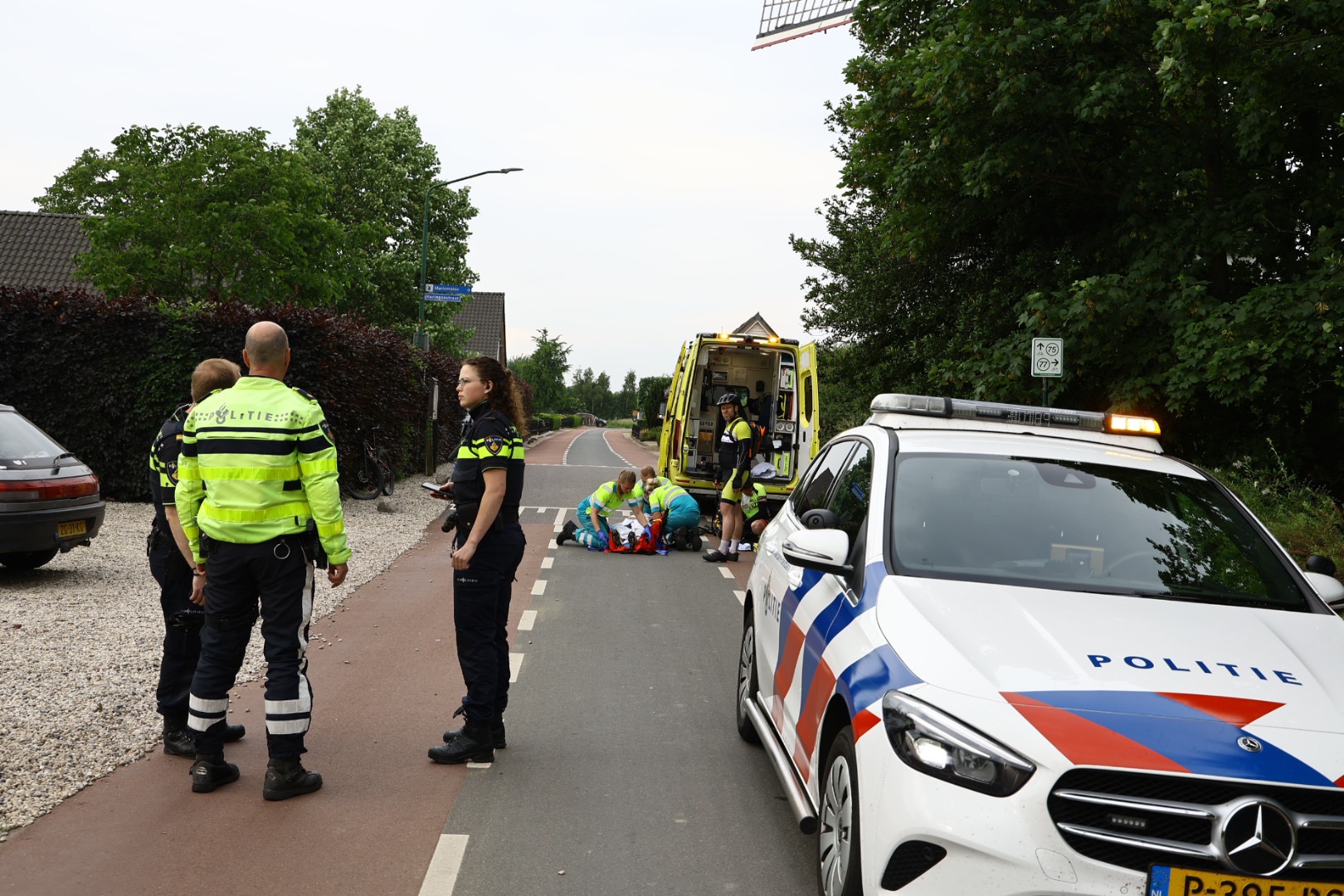 Het incident vond plaats terwijl drie wielrenners bezig waren met het ophangen van bordjes voor de fiets Vierdaagse Maashorst. Een van hen werd aangereden door de auto. Hoe het precies heeft kunnen gebeuren is niet bekend.
