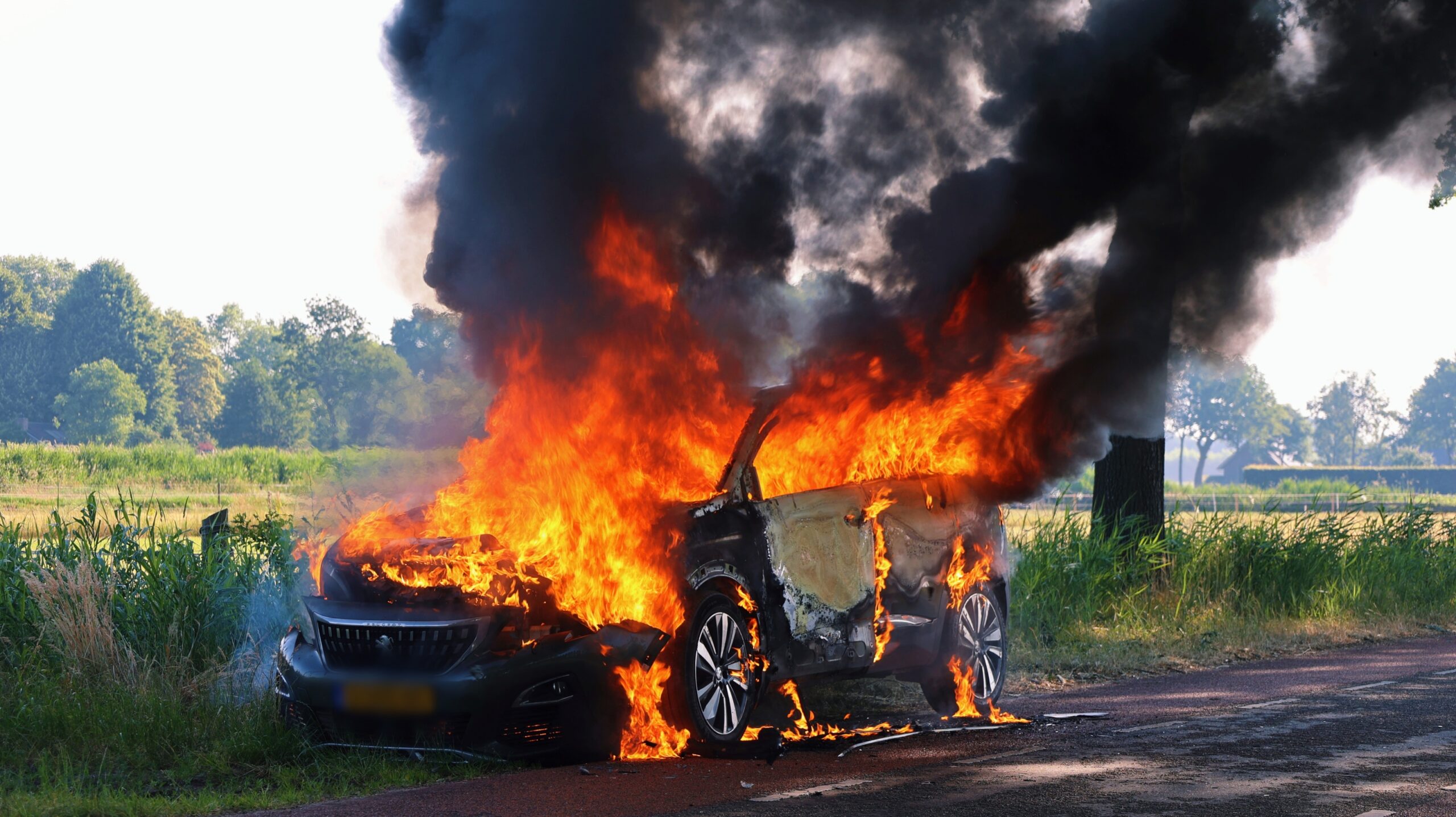 Een man reed in het buitengebied van Heesch in zijn Peugeot toen het voertuig plotseling vlam vatte. Gelukkig kon de bestuurder op tijd uit de auto stappen en raakte hij niet gewond.