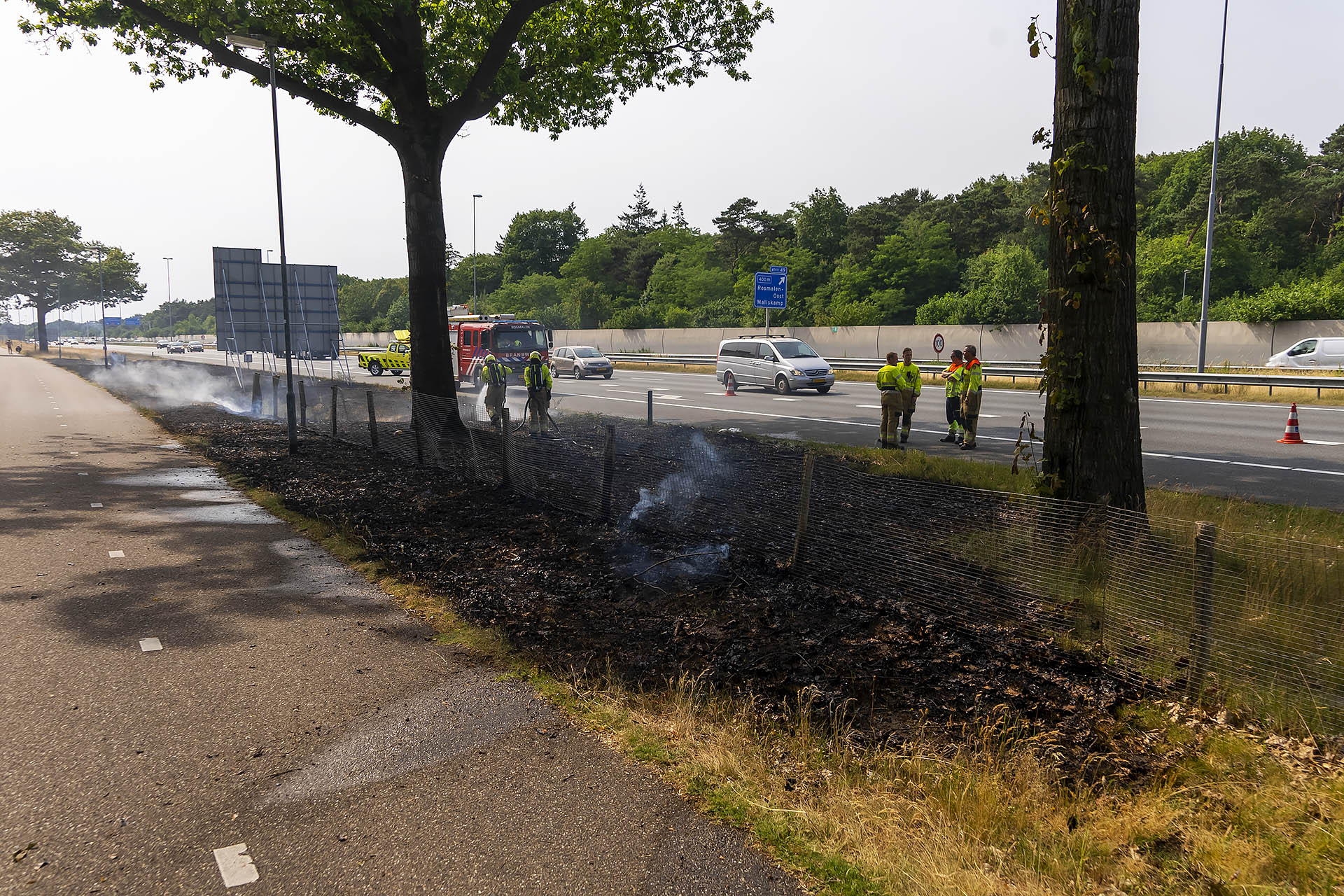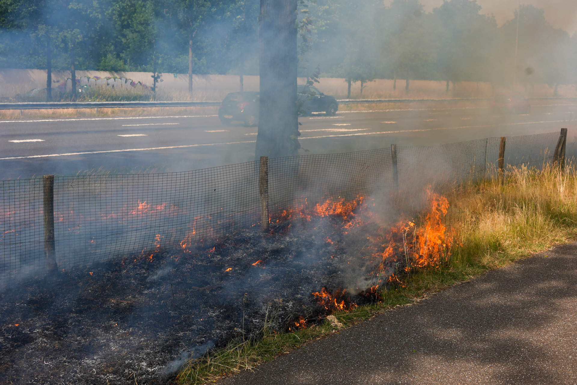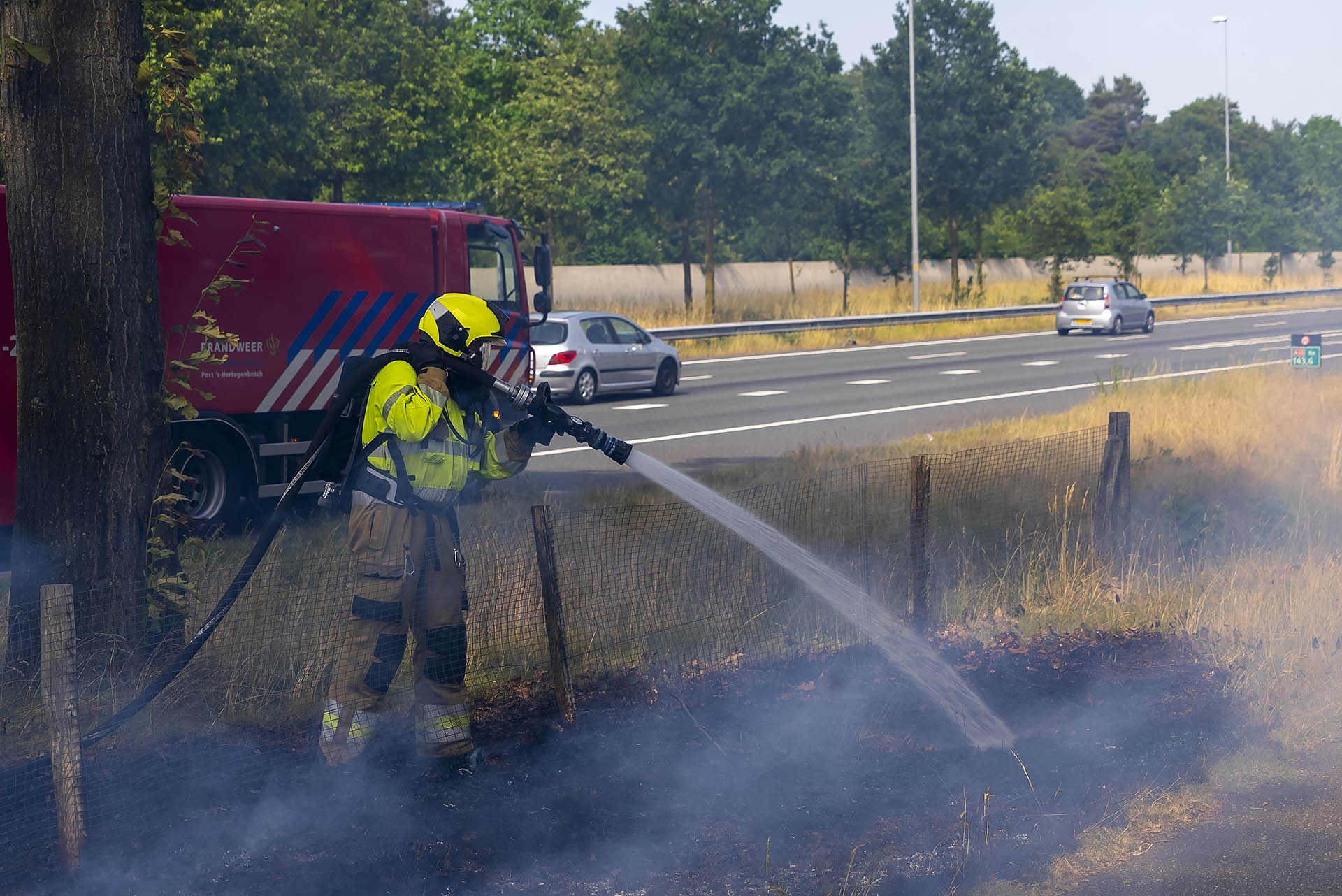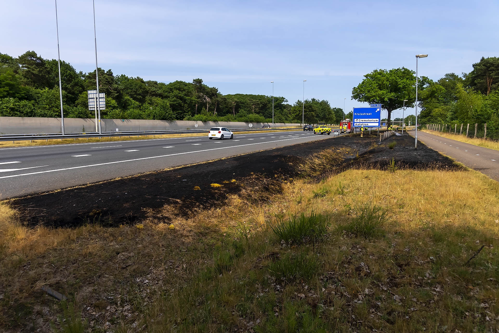 KRUISSTRAAT – Een brand in de berm langs de A59 heeft zich snel verspreid aan beide kanten van de weg, geholpen door de aanwezige wind en droge omstandigheden. De brandweer was echter snel ter plaatse en wist de brand onder controle te krijgen. Ongeveer 1500 m2 van de berm is zwartgeblakerd door de brand.