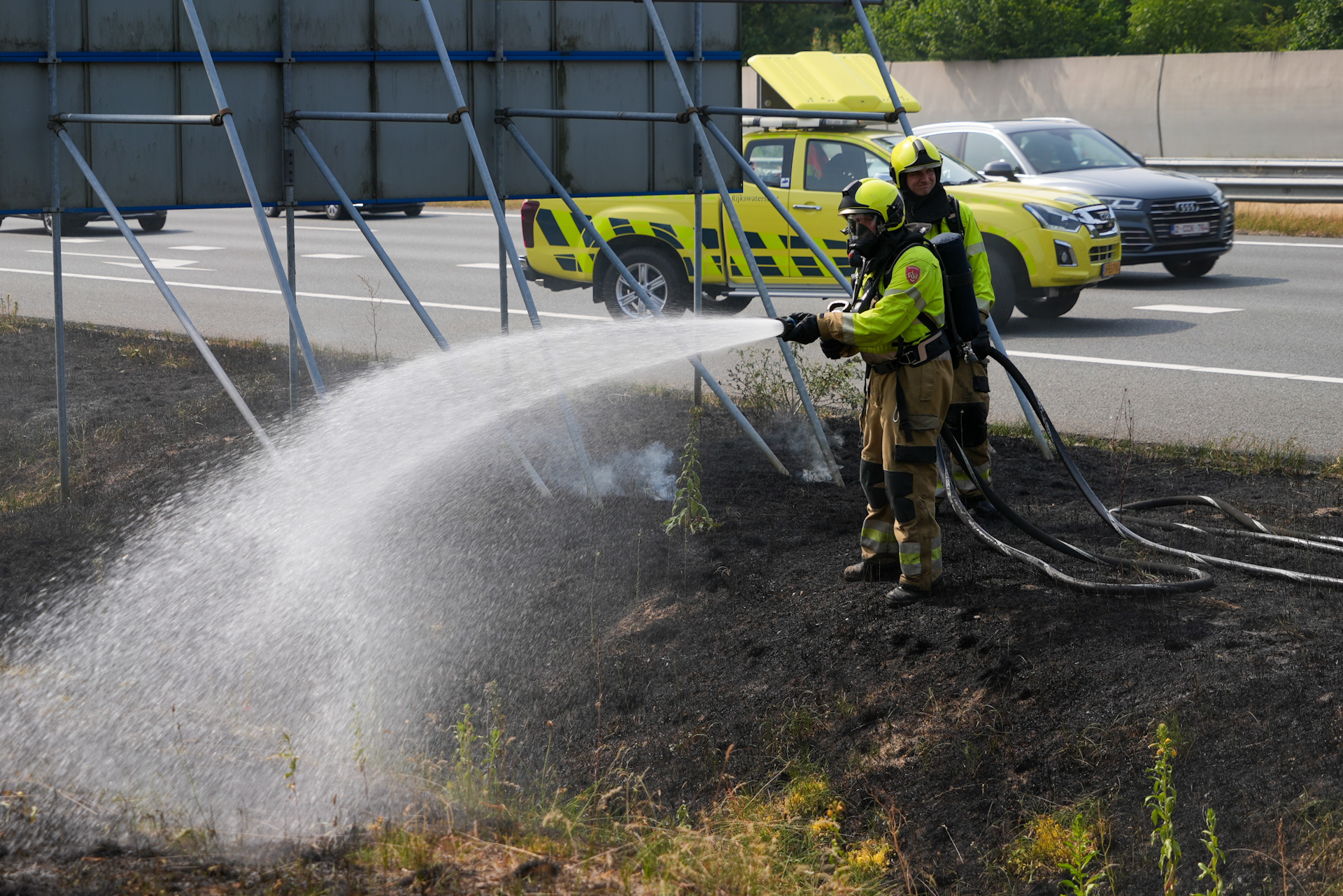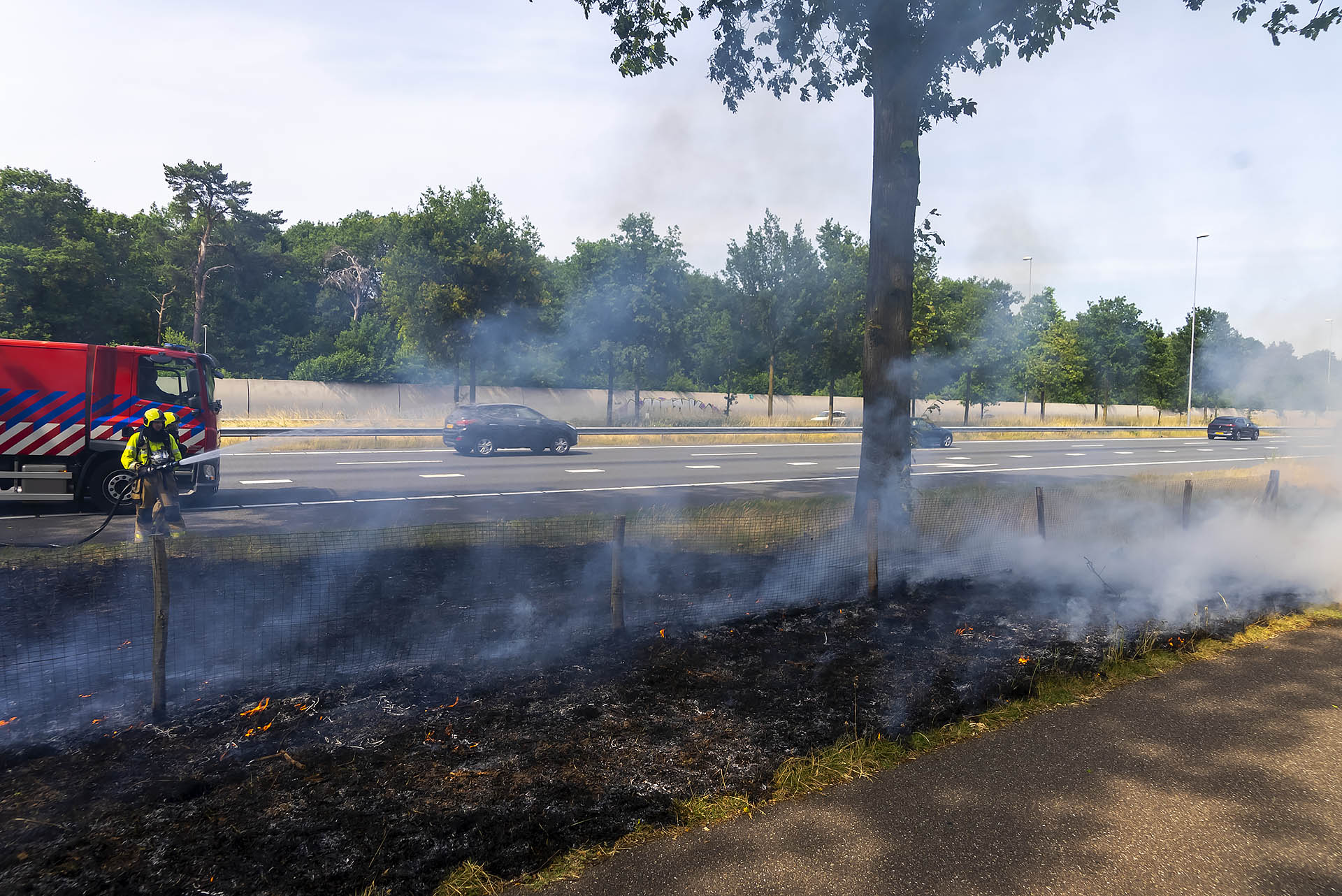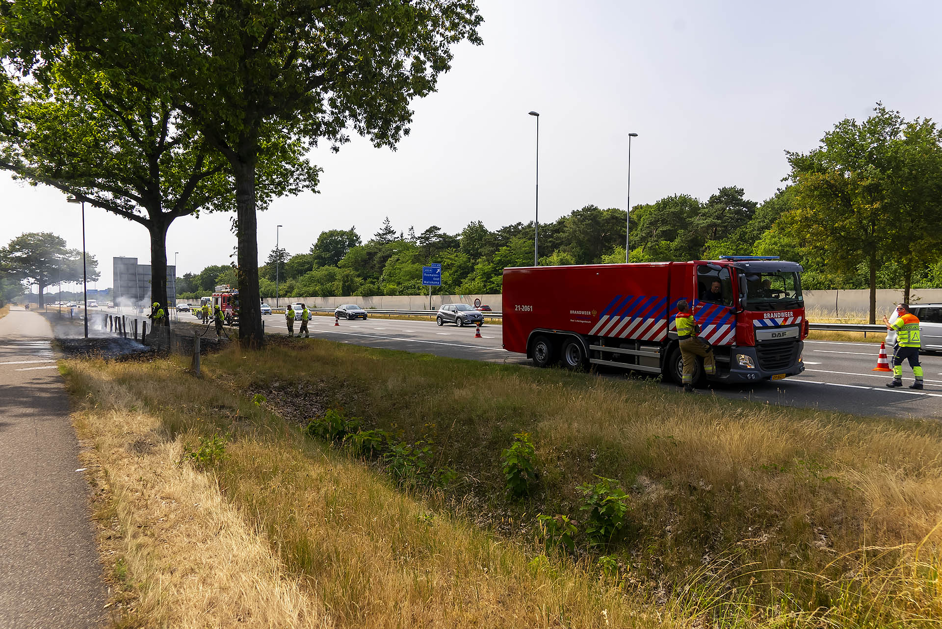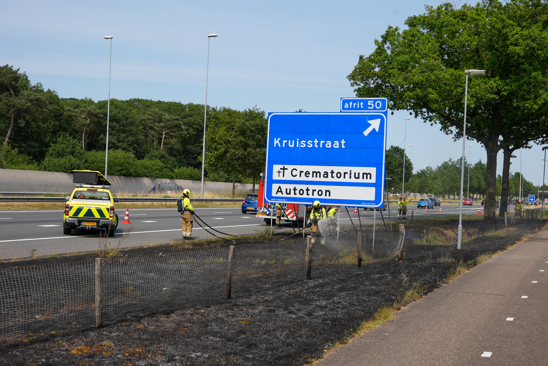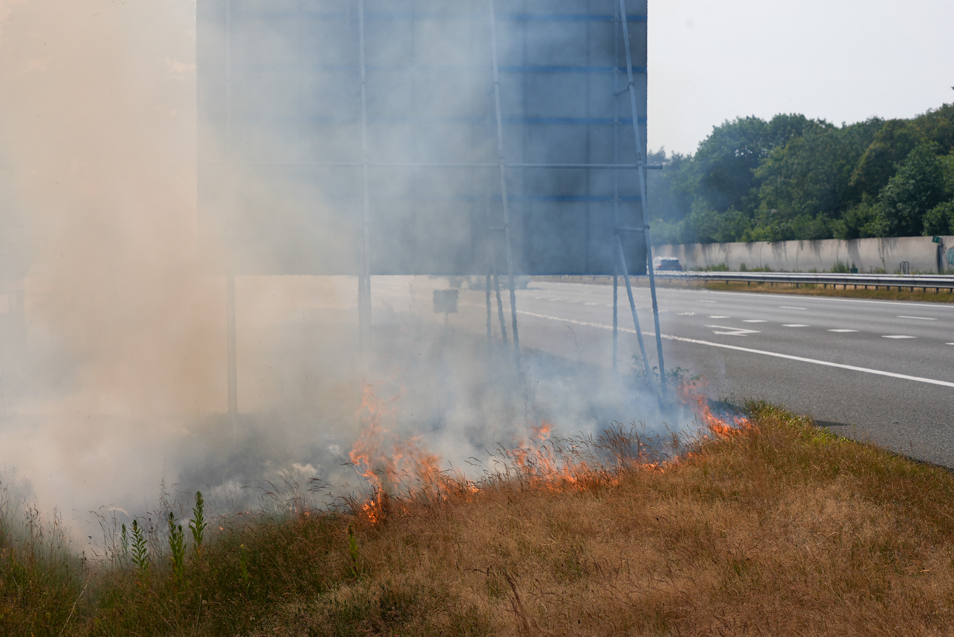 KRUISSTRAAT – Een brand in de berm langs de A59 heeft zich snel verspreid aan beide kanten van de weg, geholpen door de aanwezige wind en droge omstandigheden. De brandweer was echter snel ter plaatse en wist de brand onder controle te krijgen. Ongeveer 1500 m2 van de berm is zwartgeblakerd door de brand.