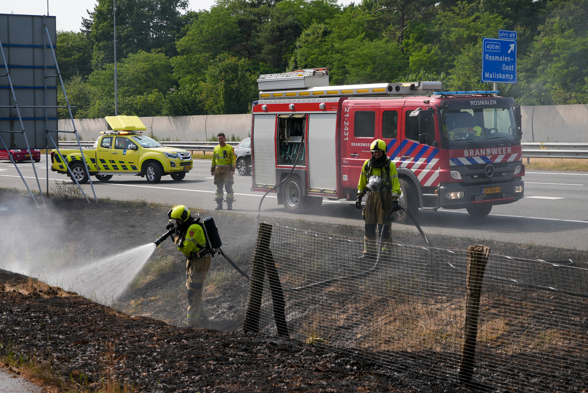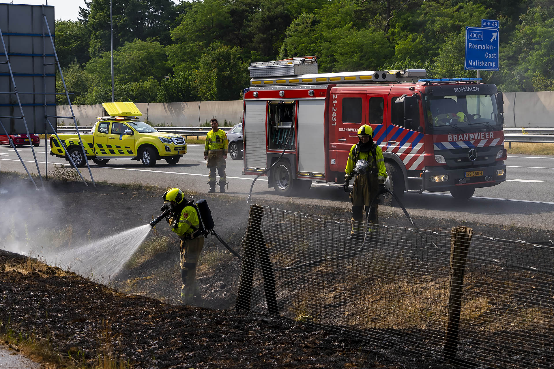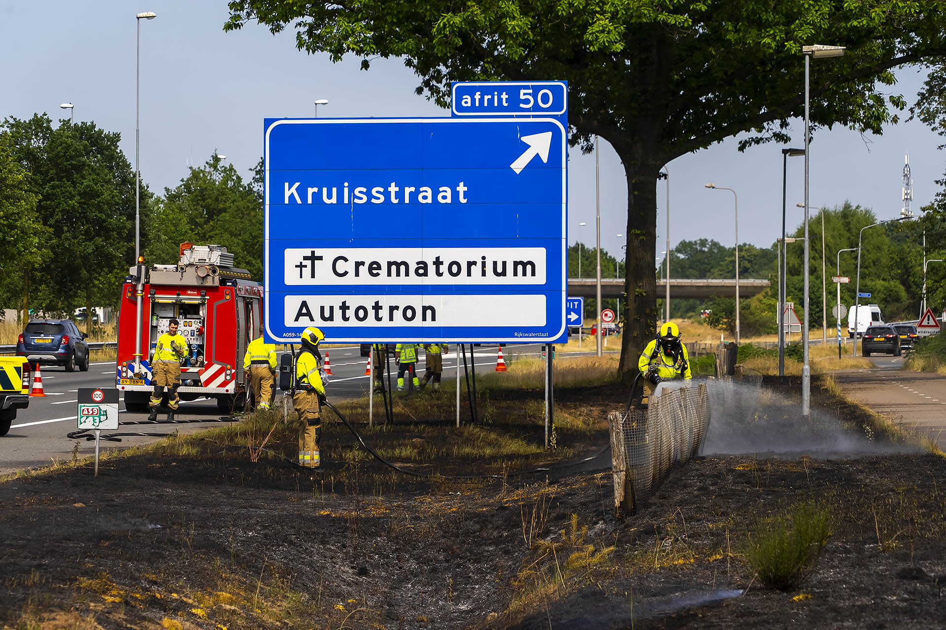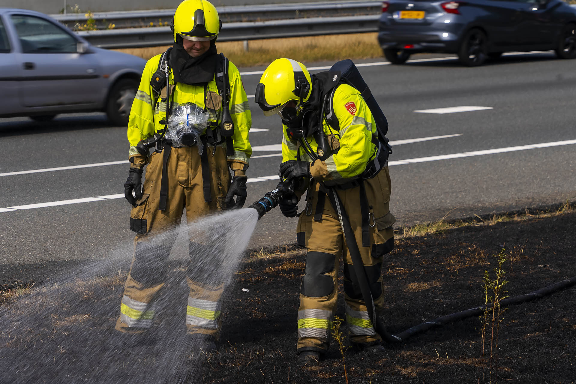 KRUISSTRAAT – Een brand in de berm langs de A59 heeft zich snel verspreid aan beide kanten van de weg, geholpen door de aanwezige wind en droge omstandigheden. De brandweer was echter snel ter plaatse en wist de brand onder controle te krijgen. Ongeveer 1500 m2 van de berm is zwartgeblakerd door de brand.