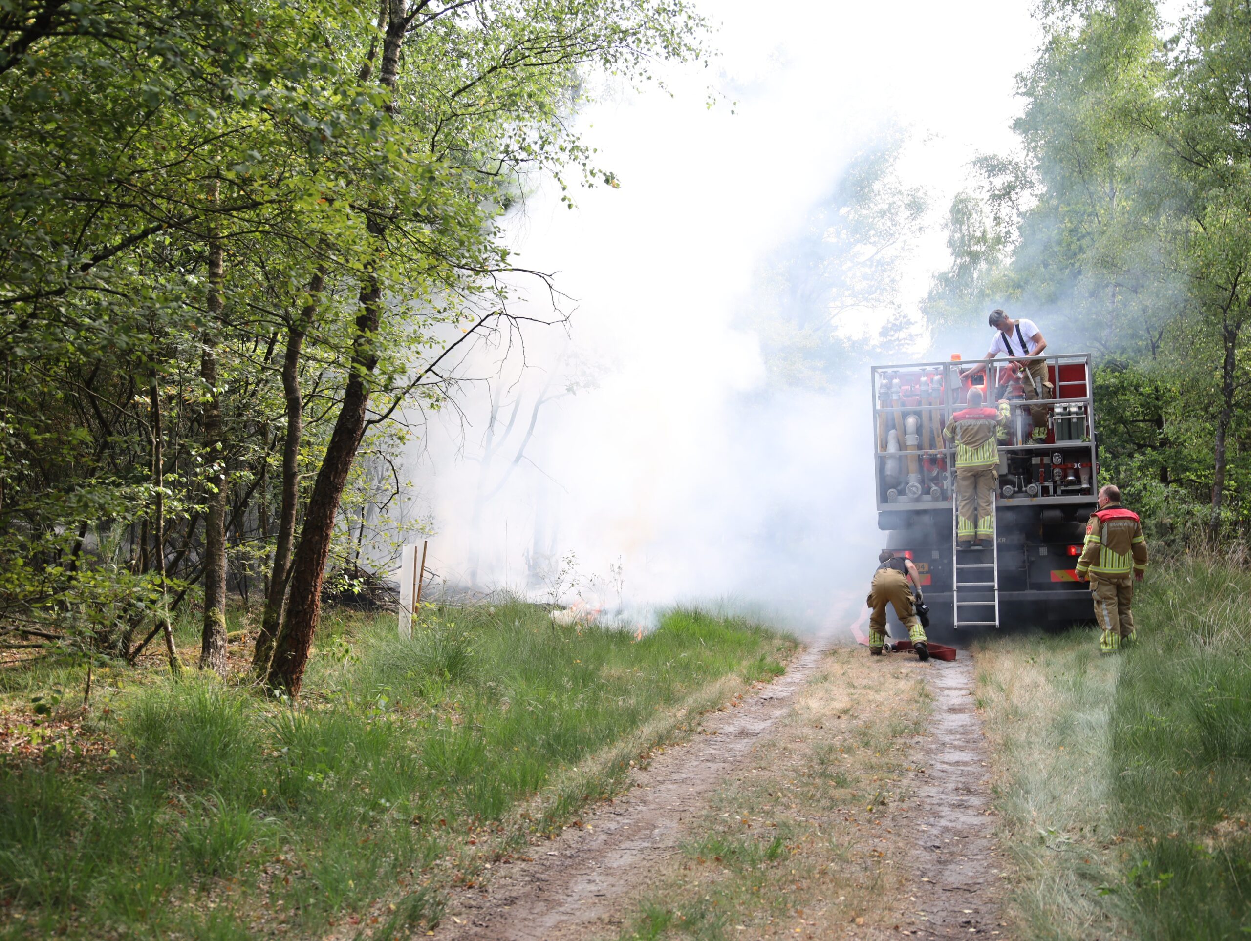 De brandweer is op grote schaal opgeroepen om het vuur te bestrijden. Dankzij het snelle optreden van de brandweer en omdat de brand zich aan de zijde van het pad bevond, kon het vuur snel onder controle worden gebracht.
