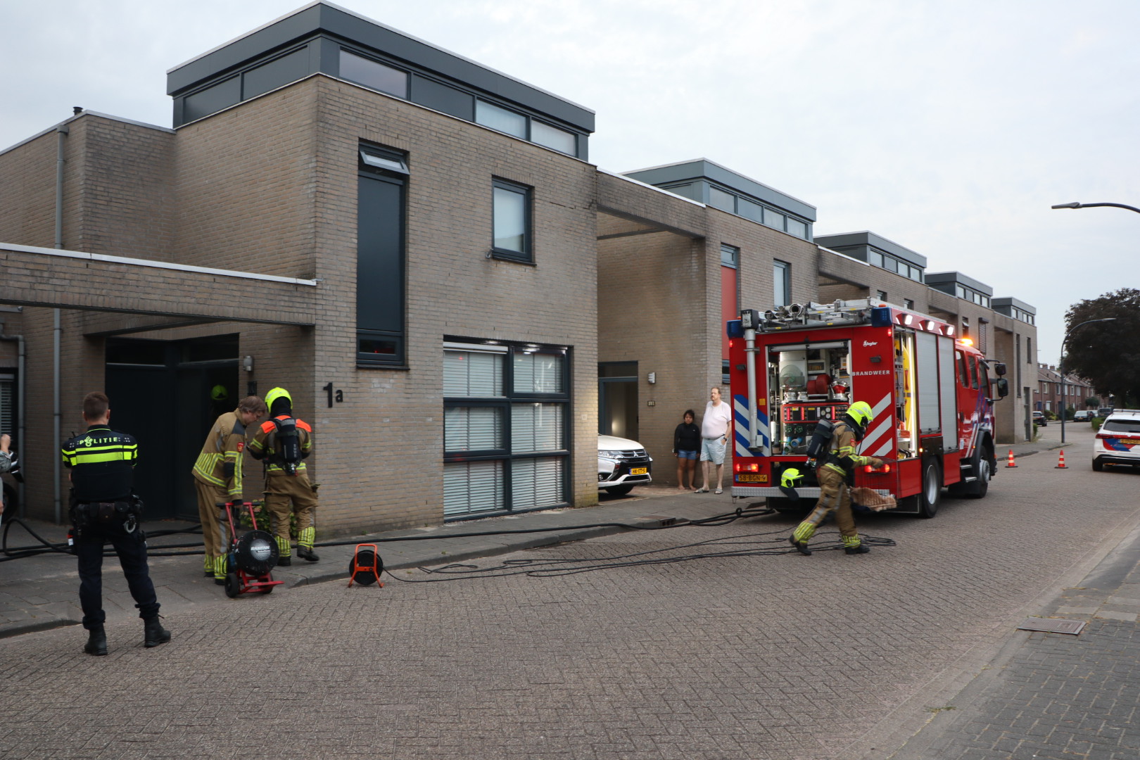 De bewoonster was aanwezig tijdens de brand en werd opgevangen door de politie en omwonenden. De 2 katten werden in de auto van de bewoonster geplaatst. De brandweer wist het vuur snel te blussen, maar er is wel aanzienlijke rookschade.