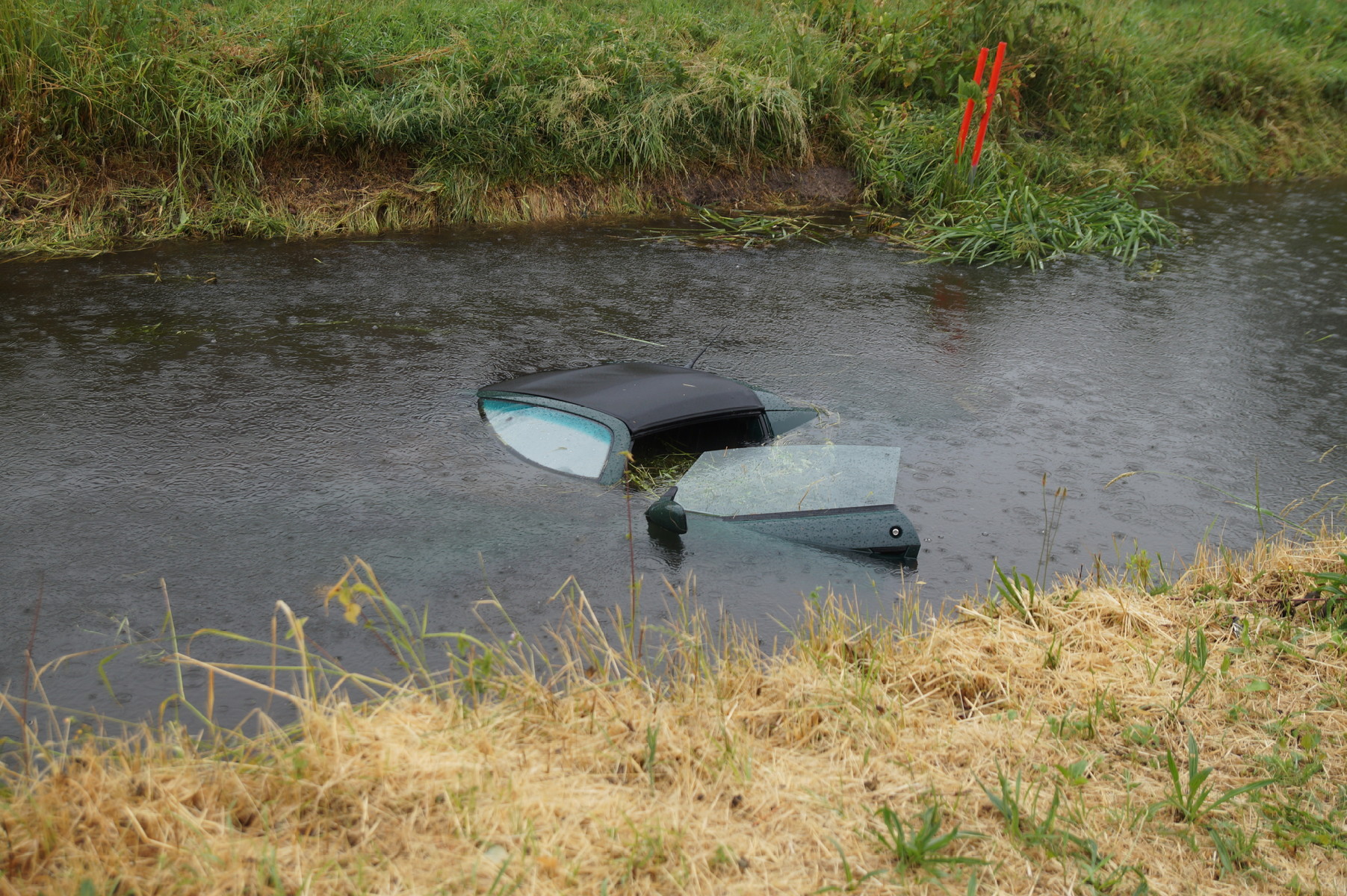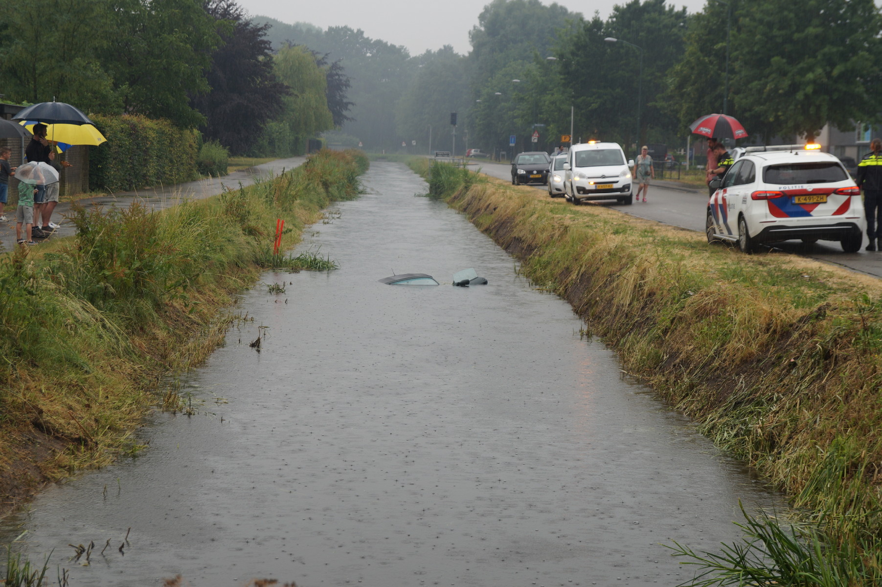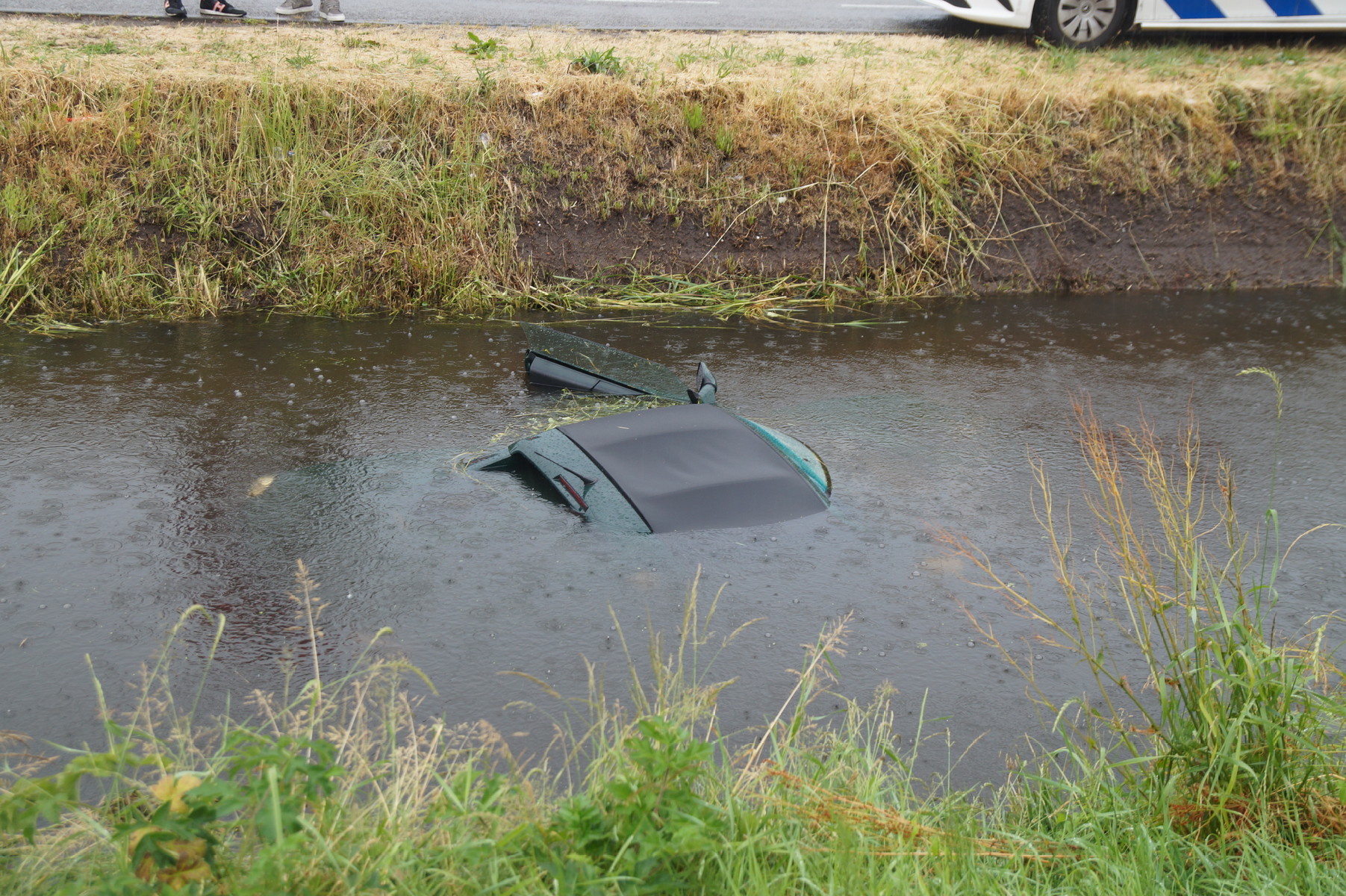 Het ongeluk vond plaats omstreeks 17.30 uur. Aangezien de bestuurder al uit de auto was, hoefde de brandweer weinig actie te ondernemen bij aankomst. Het waterschap is ter plaatse om mogelijke verontreiniging van het water te behandelen. Het voertuig zal worden geborgen.