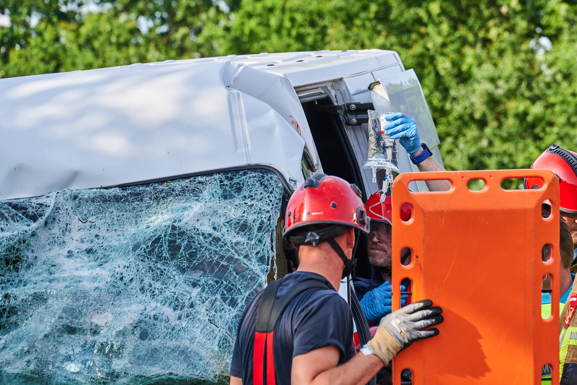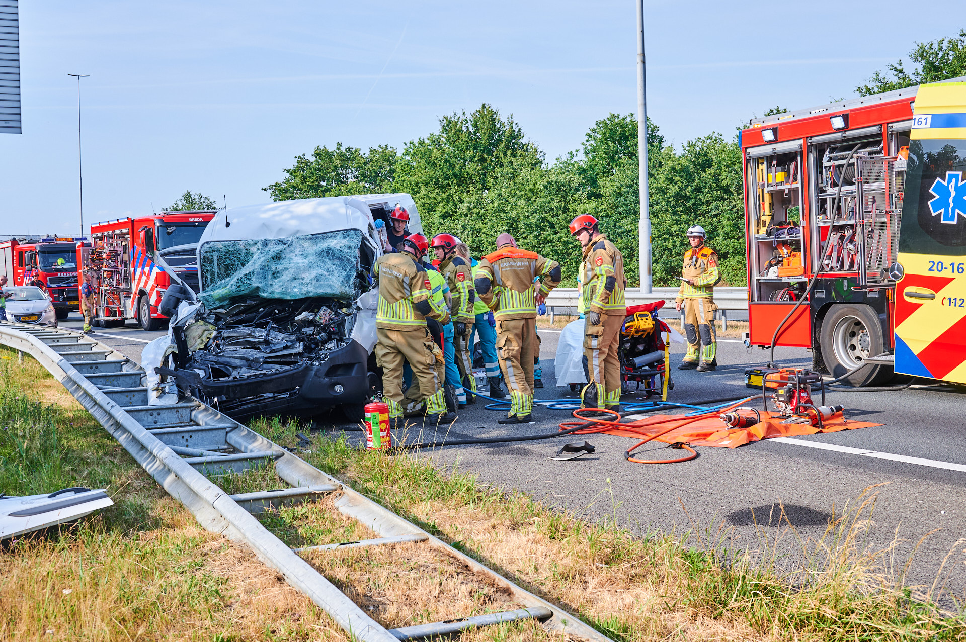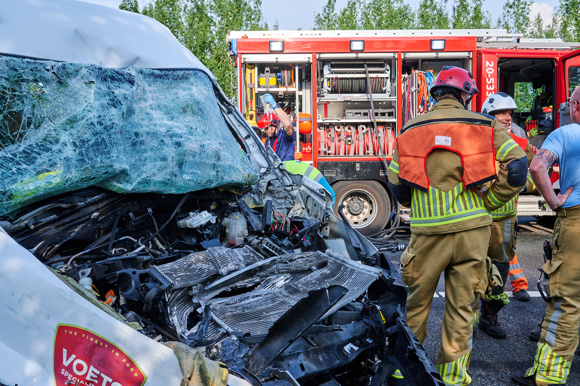 Het ongeval vond plaats rond 18.25 uur, waarna verschillende hulpdiensten ter plaatse kwamen. De brandweer slaagde erin de bestuurder uit zijn benarde positie te bevrijden, waarna hij met spoed naar het ziekenhuis werd vervoerd. Door de botsing is er weinig overgebleven van de voorkant van de bestelbus.