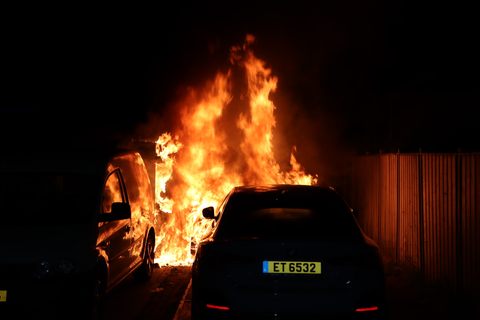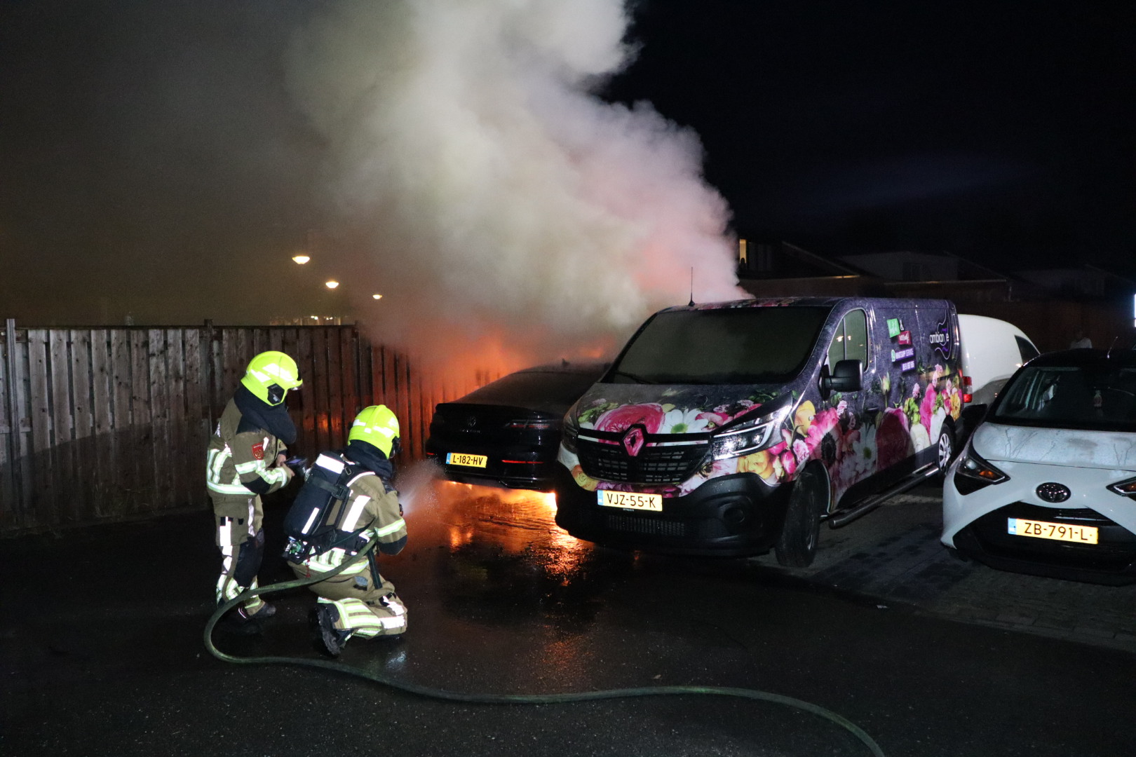 De brandweer arriveerde snel op de locatie, maar kon niet voorkomen dat één auto volledig uitbrandde en dat een bestelbus van een bloemist naast de brandende auto eveneens onherstelbaar beschadigd raakte. Twee auto’s die voor de brandende auto stonden, liepen ook schade op. De oorzaak van de brand is nog onbekend.