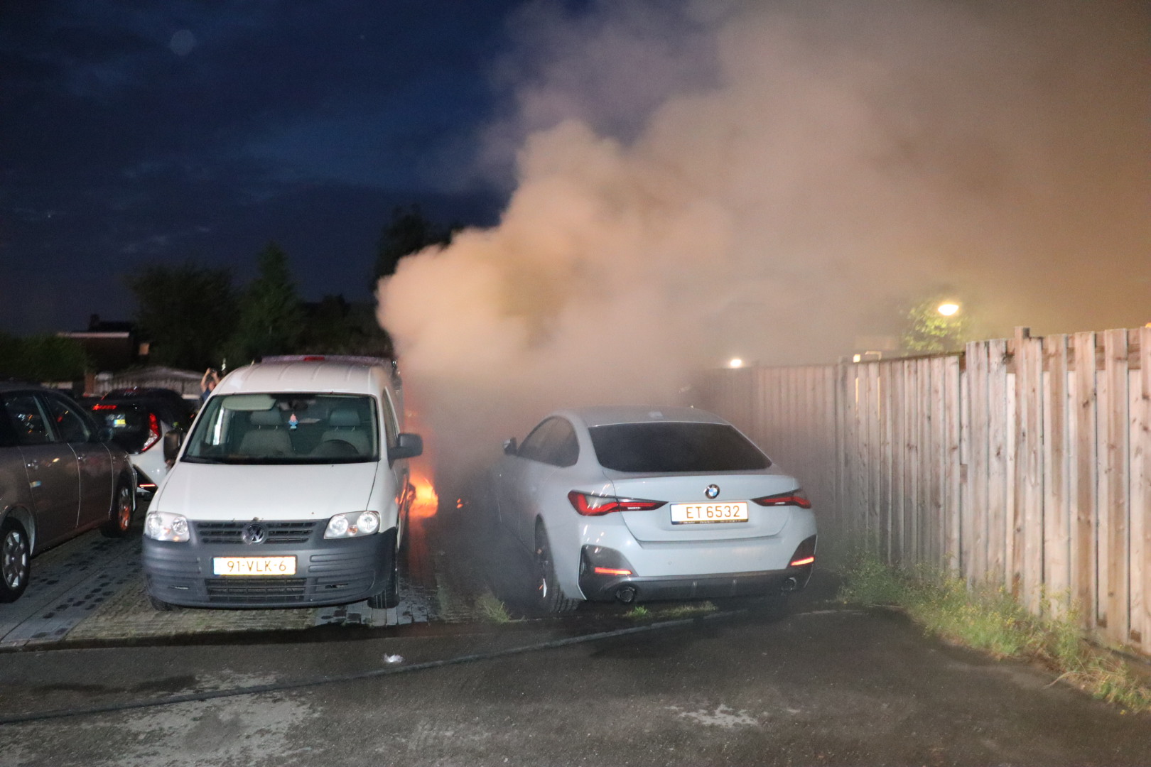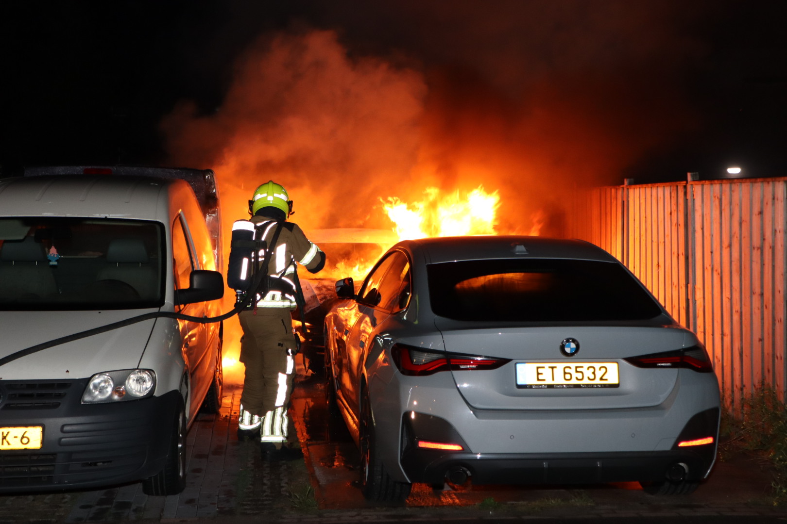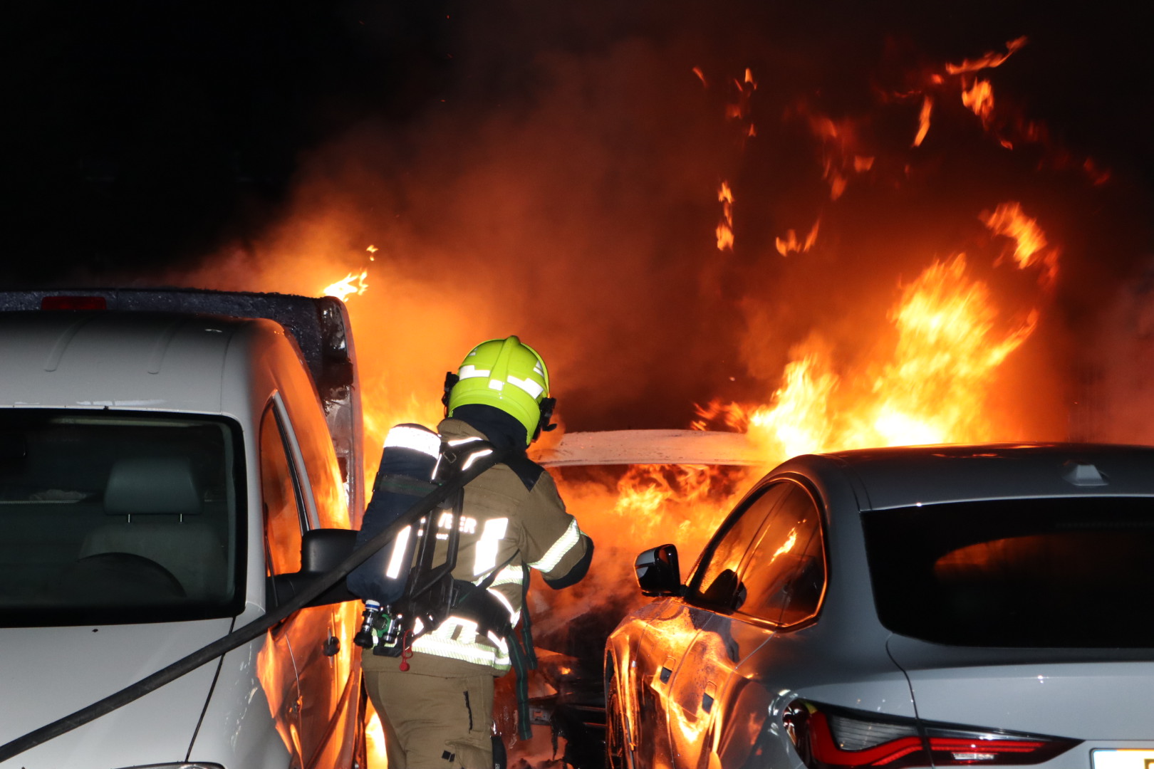 De brandweer arriveerde snel op de locatie, maar kon niet voorkomen dat één auto volledig uitbrandde en dat een bestelbus van een bloemist naast de brandende auto eveneens onherstelbaar beschadigd raakte. Twee auto’s die voor de brandende auto stonden, liepen ook schade op. De oorzaak van de brand is nog onbekend.