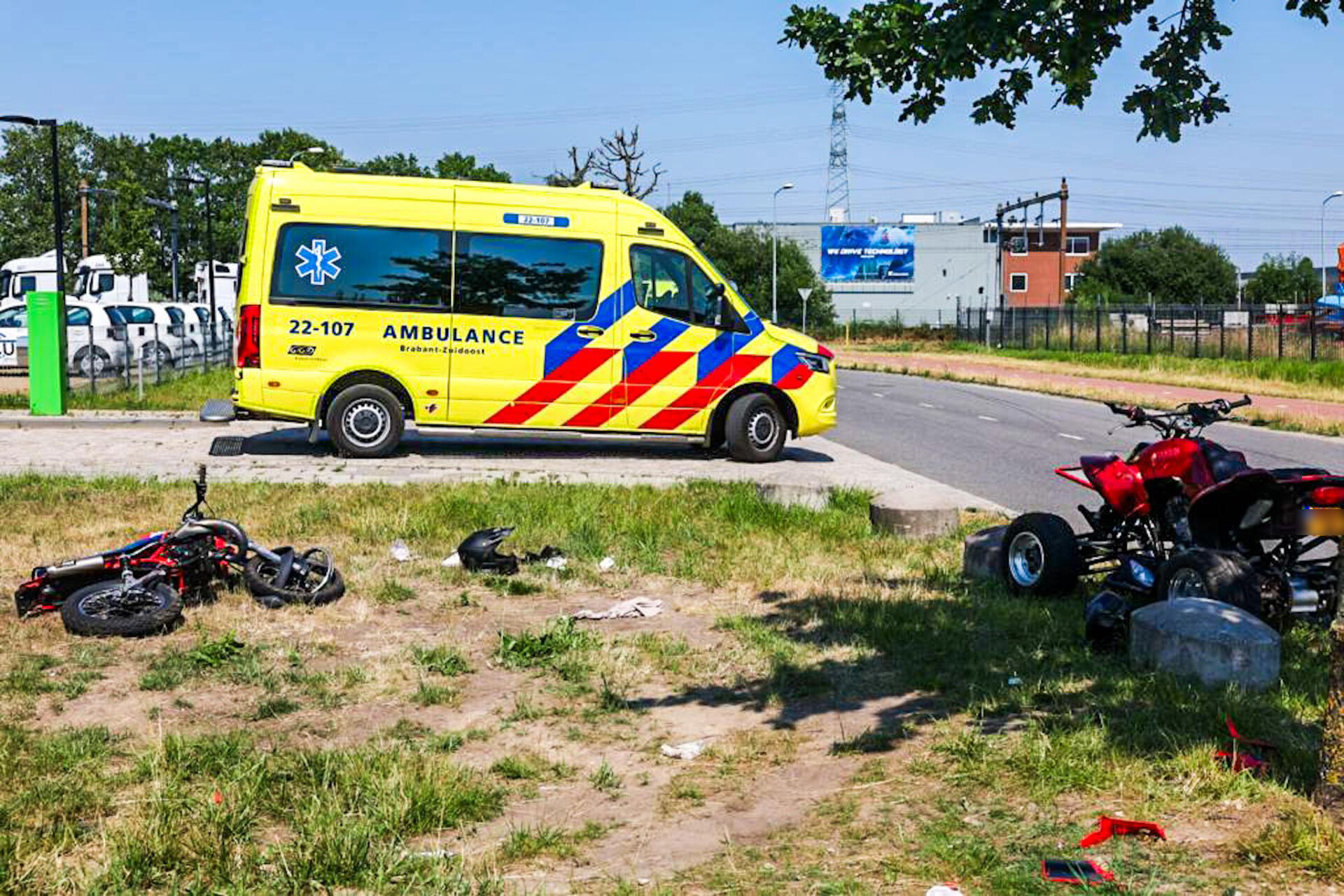 Botsing tussen quadrijder en motorrijder, traumaheli geland