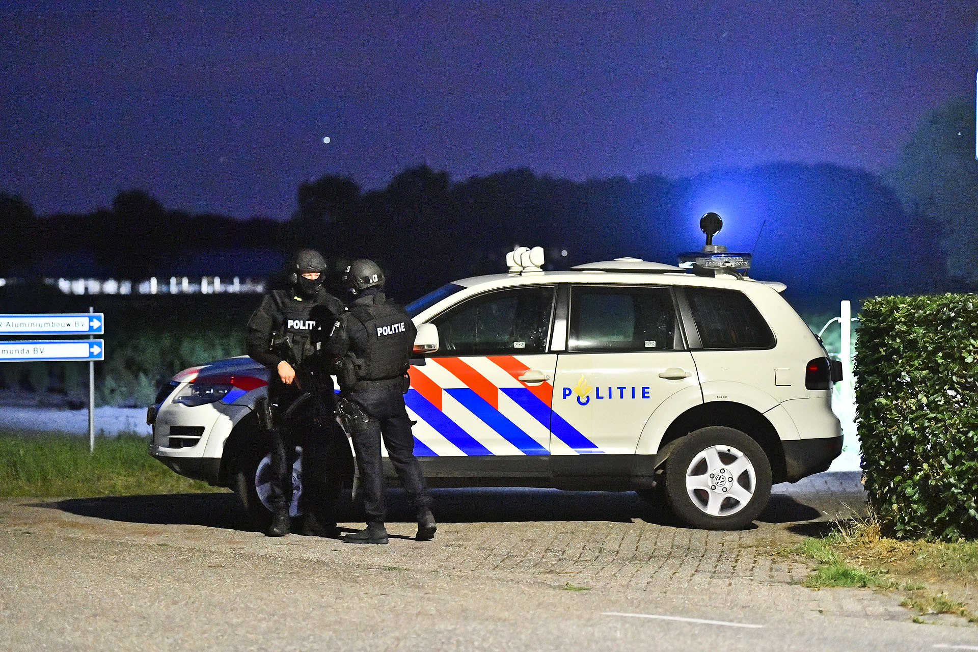 Zwaar bewapende agenten bewaken drugslab