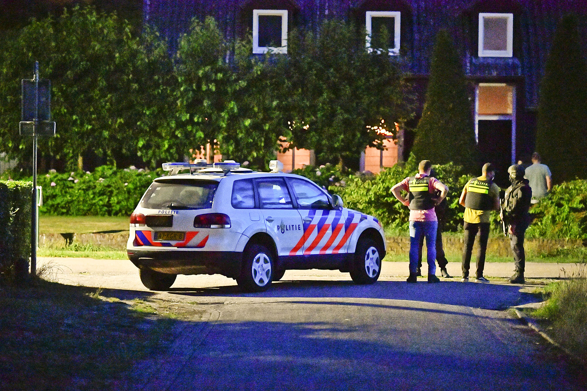 Zwaar bewapende agenten bewaken drugslab