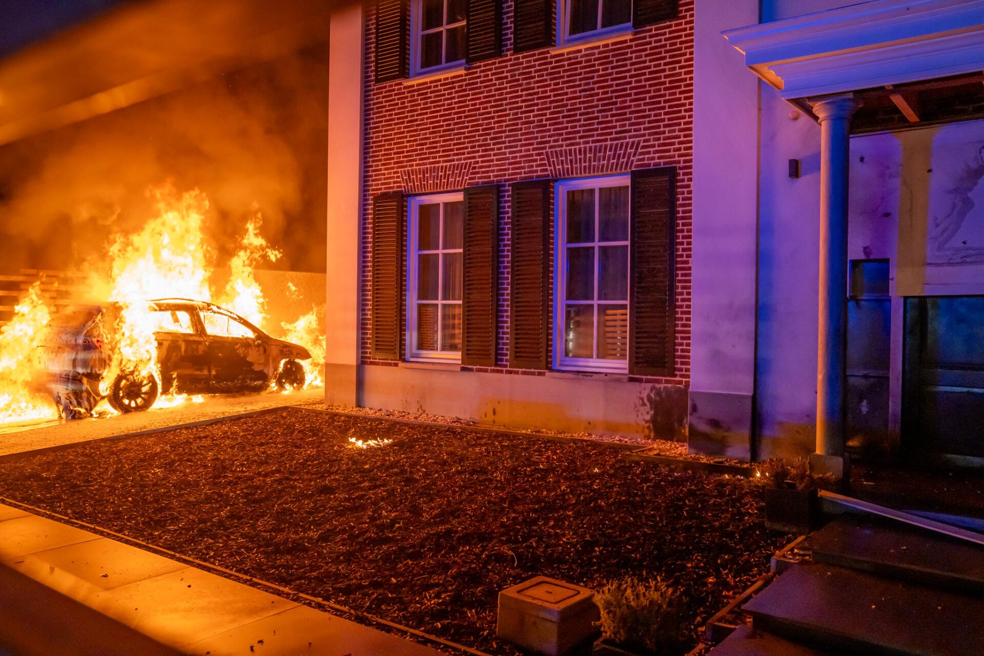 GELDROP – In de nacht van maandag op dinsdag is een auto op de Zwembadweg in Geldrop volledig verwoest door brand. Dit gebeurde nadat er kort voor twee uur een explosie plaatsvond bij de voordeur van een villa. De auto stond geparkeerd op de oprit van het grote huis.