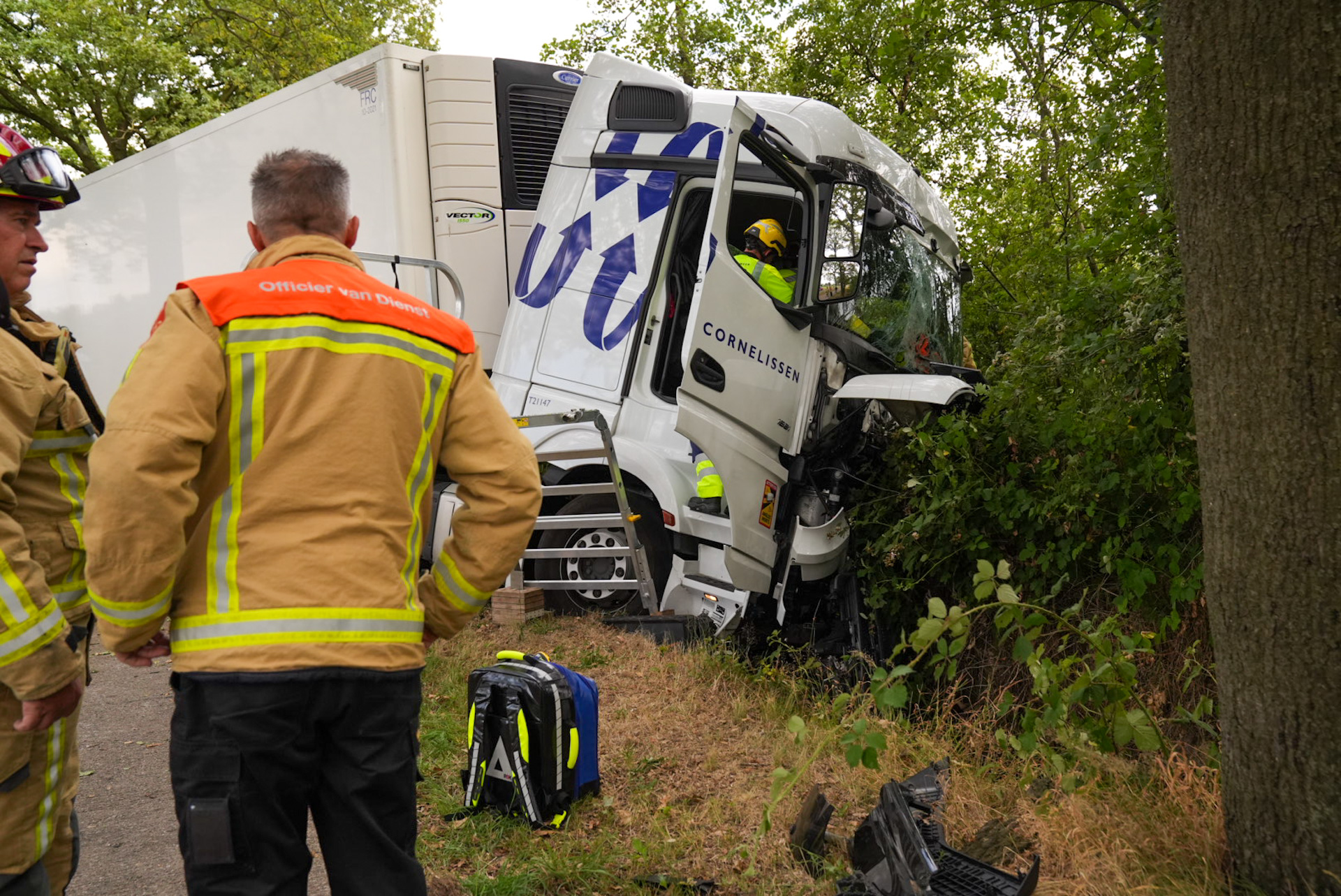 Vrachtwagenchauffeur bekneld na botsing met boom