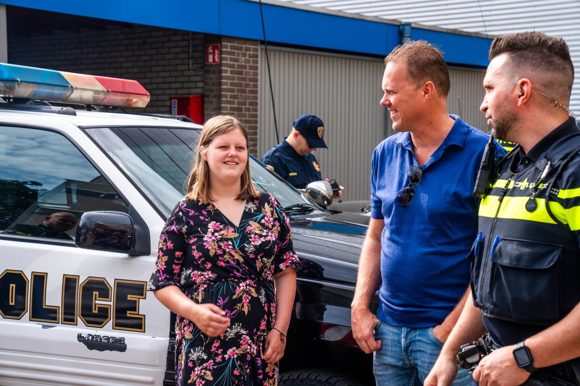 Na een kleine rondleiding op het bureau waar ze onder andere de cellen te zien kreeg stonden buiten meerdere voertuigen klaar waar ze in mocht zitten en geven enkele agenten uitleg over de voertuigen en het werk wat ze doen.