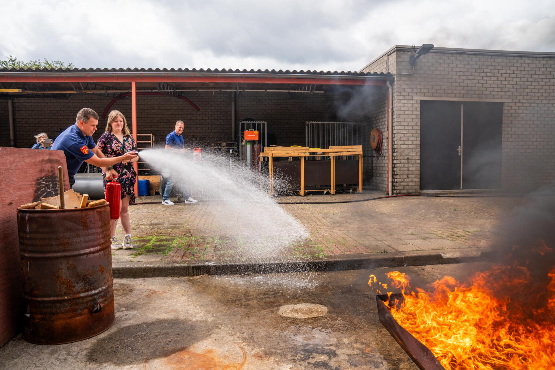 Na deze demonstraties werd er in colonne met zwaailicht en sirene naar de brandweer gereden. Hier kreeg Lisa wat uitleg over de hoogwerker en mocht ze mee in het bakje omhoog. Terwijl de brandweer nog uitleg aan het geven was kwam er ineens een alarm binnen. Lisa moest uitrukken! Met spoed reed Lisa met vader en moeder in de tankautospuit naar de achterkant van de brandweer kazerne alwaar een flinke brand aan het woeden was. Lisa kreeg van de brandweer een straal in haar handen en moest de brand blussen. Toen bleek dat het een vloeistof brand was moesten de vlammen met een schuimblusser uitgemaakt worden.