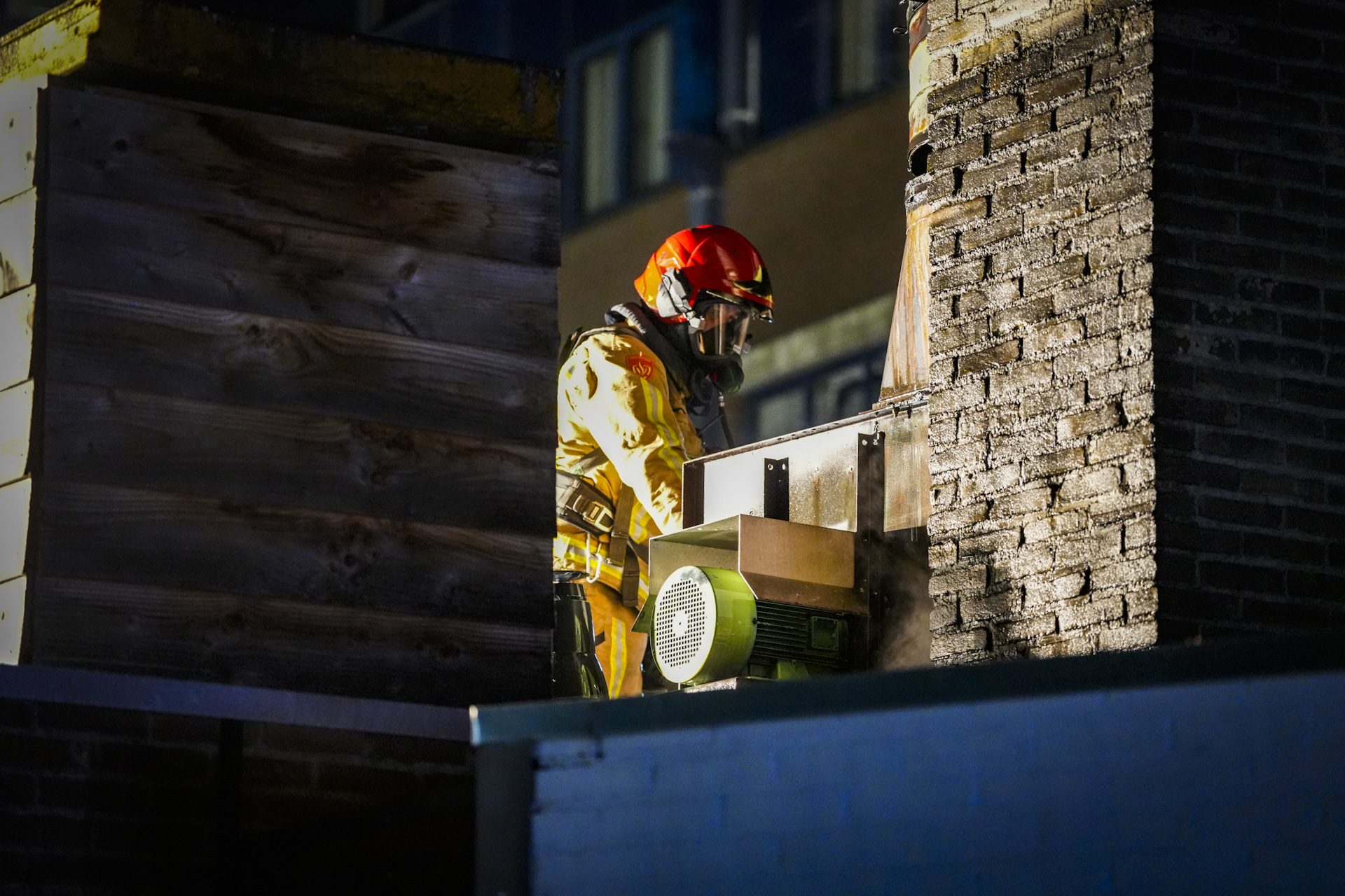 De brandweer heeft de brand aan de achterkant geblust, met een hoogwerker werd ook de schoorsteen boven de keuken geblust.