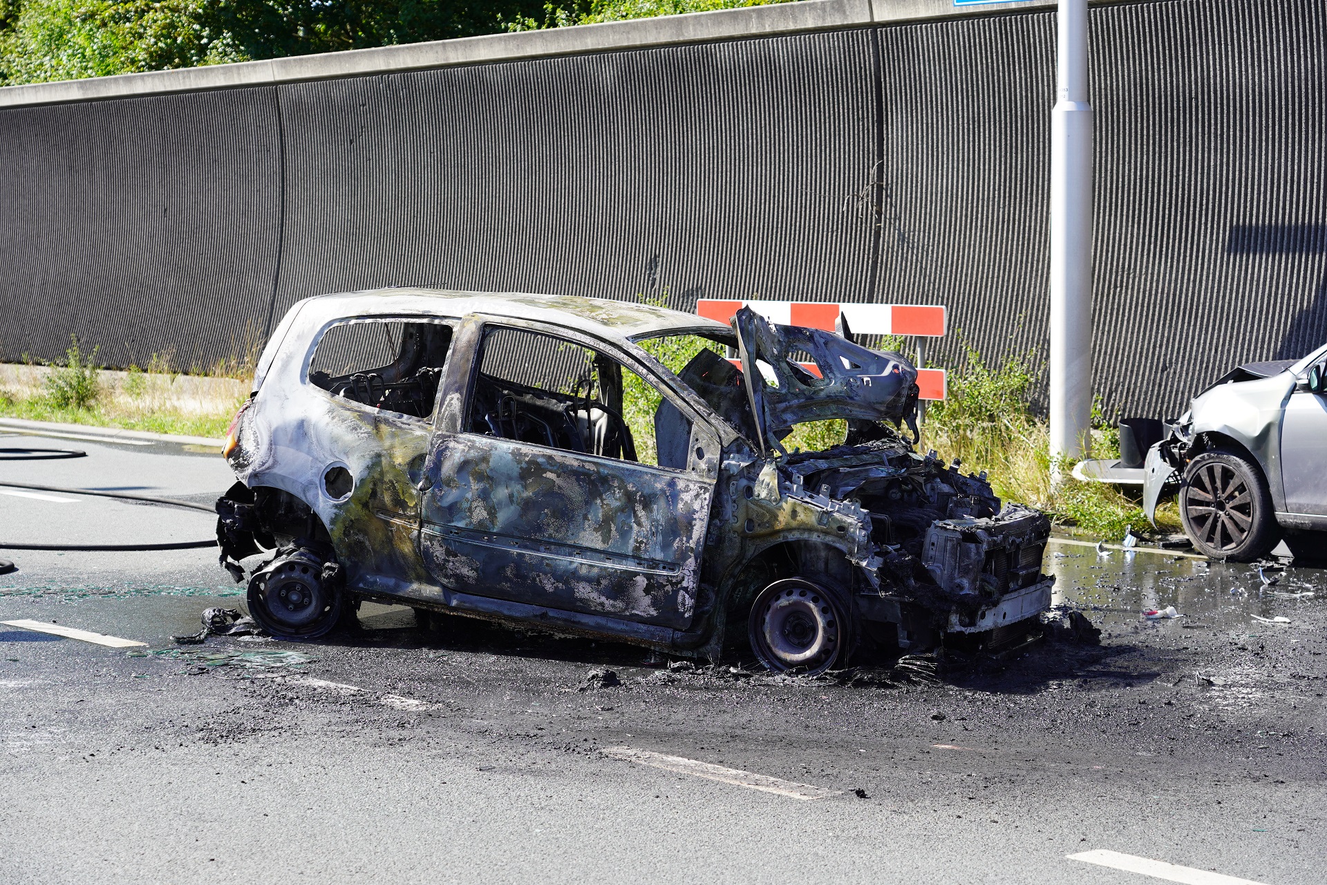 De bestuurder konden zich op tijd in veiligheid brengen. De vlammen sloegen snel om zich heen. De brandweer kwam met meerdere wagens ter plaatse maar konden niet voorkomen dat de auto geheel uitbrandde. De weg is afgesloten voor het verkeer.