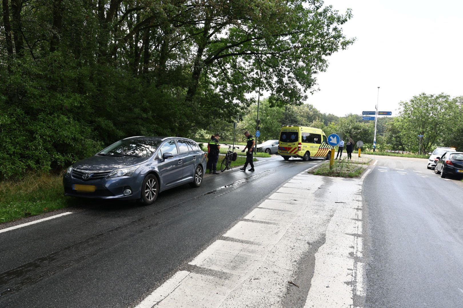 Automobiliste ziet fietser over het hoofd op rotonde