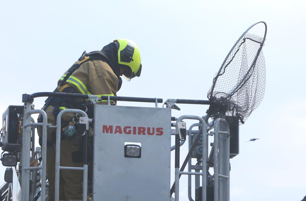 De hulpdiensten kwamen ter plaatse met een redvoertuig om de kat van het dak te halen. Met behulp van een schepnet en speciale handschoenen gingen de brandweerlieden naar de kat toe. De kat besloot echter niet te wachten op de brandweer en ging snel naar de achterzijde van het dak. Ondanks dat de brandweer meerdere keren met een groot schepnet naar de kat reikte, koos de kat ervoor om via de dakgoot het dak te verlaten en stond weer veilig op de grond.