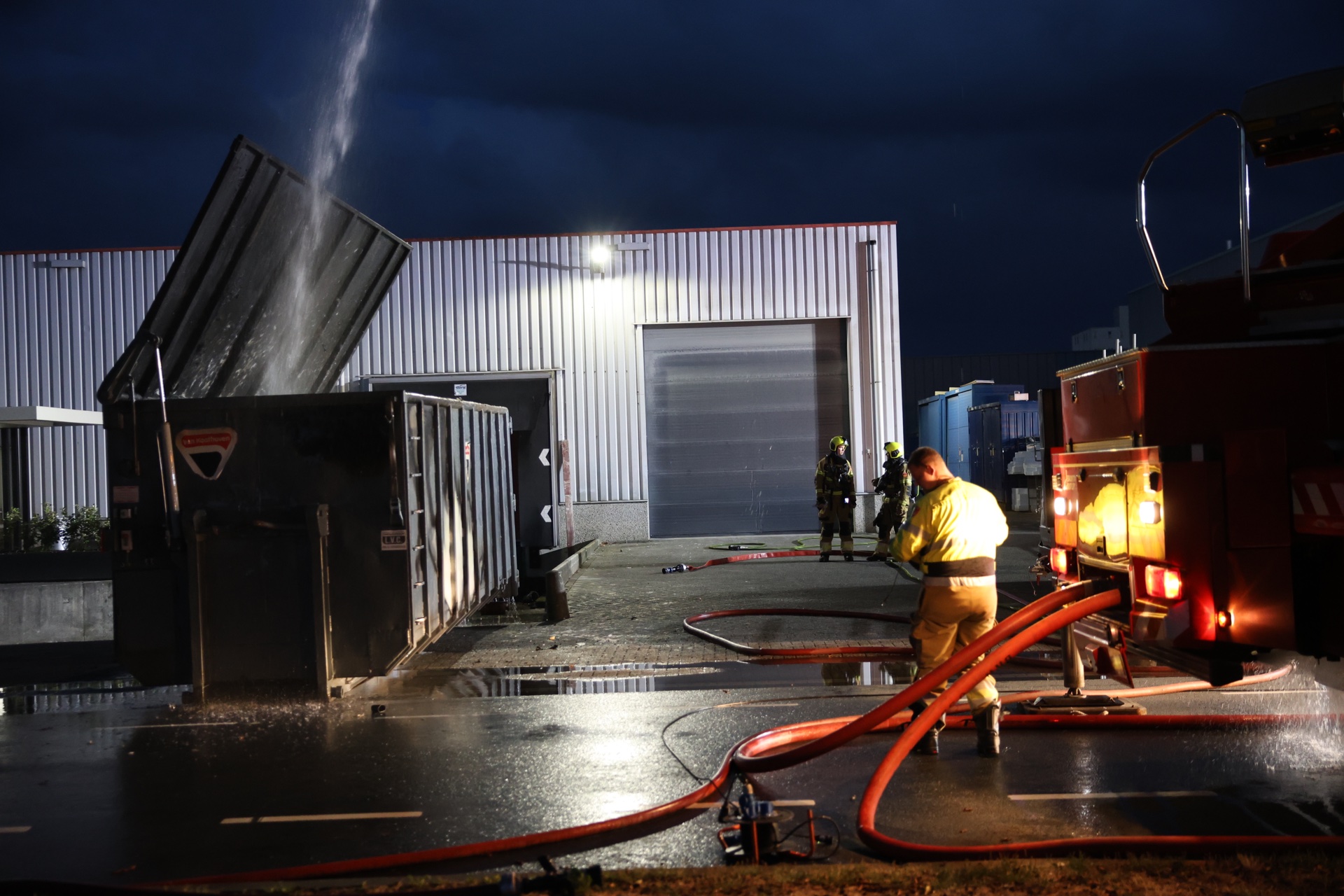Grote brandweerinzet voor containerbrand tegen bedrijfspand aan