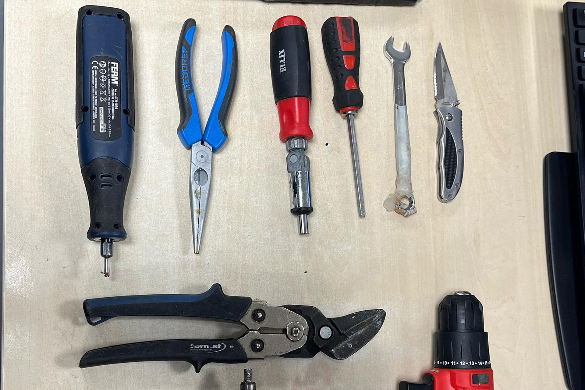 Daarnaast werd gereedschap aangetroffen dat gebruikt kan worden bij inbraken, en hij was in het bezit van een mes. Eerder op dezelfde dag was dezelfde man al eens aangehouden en kreeg hij een rijverbod wegens rijden onder invloed.