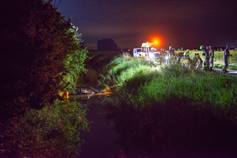 Auto vliegt van dijk en komt in sloot tot stilstand
