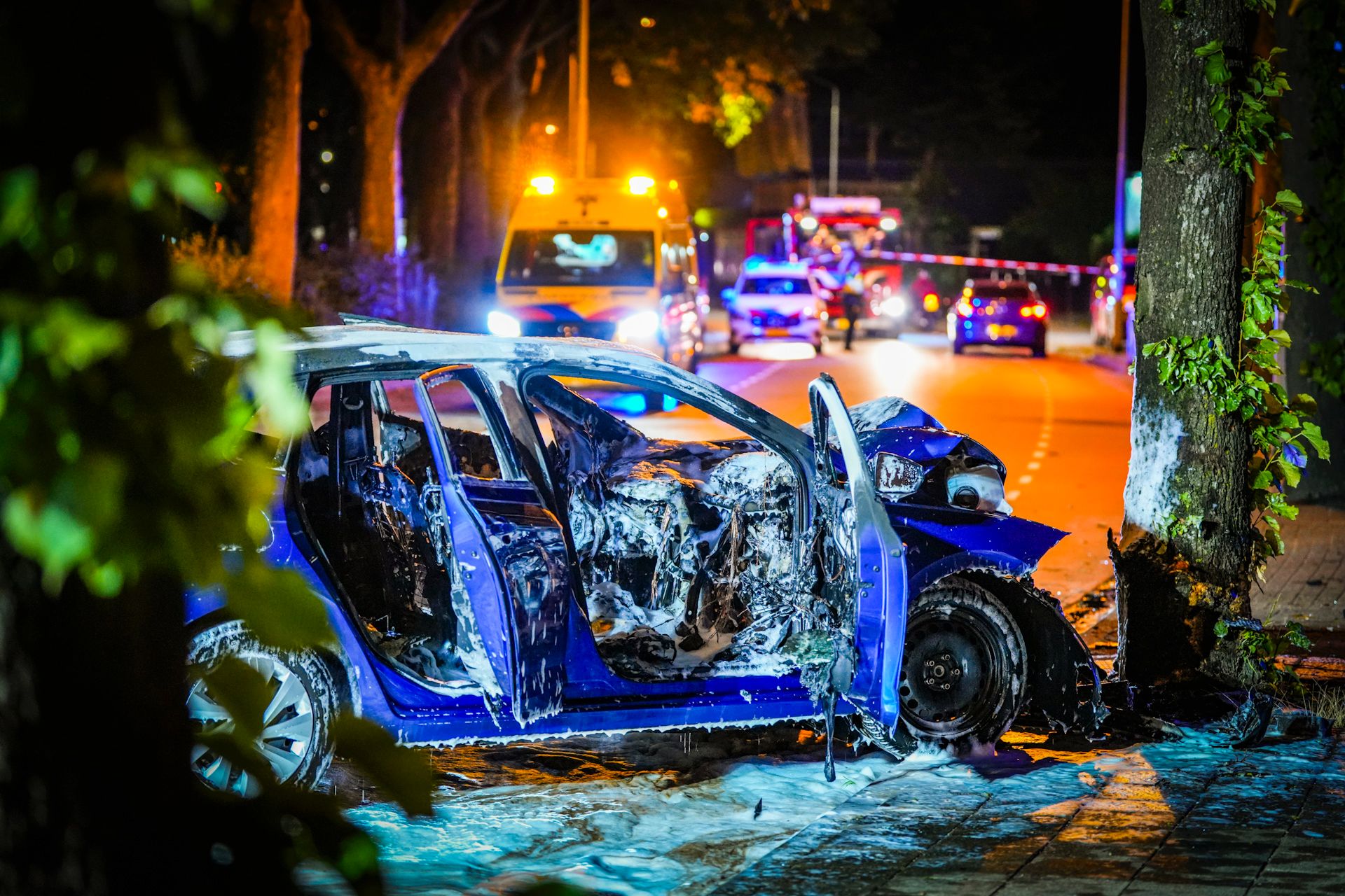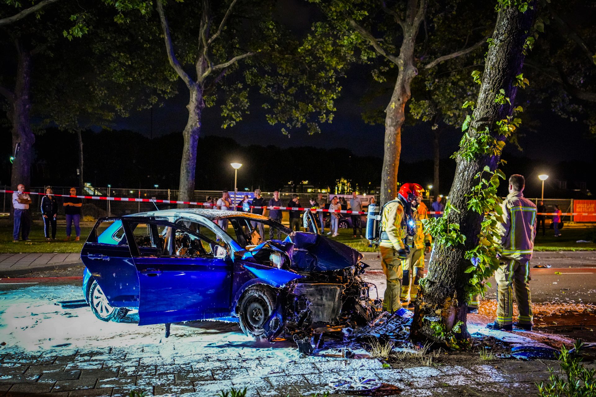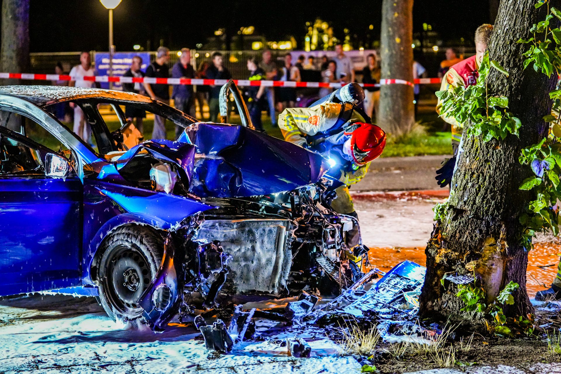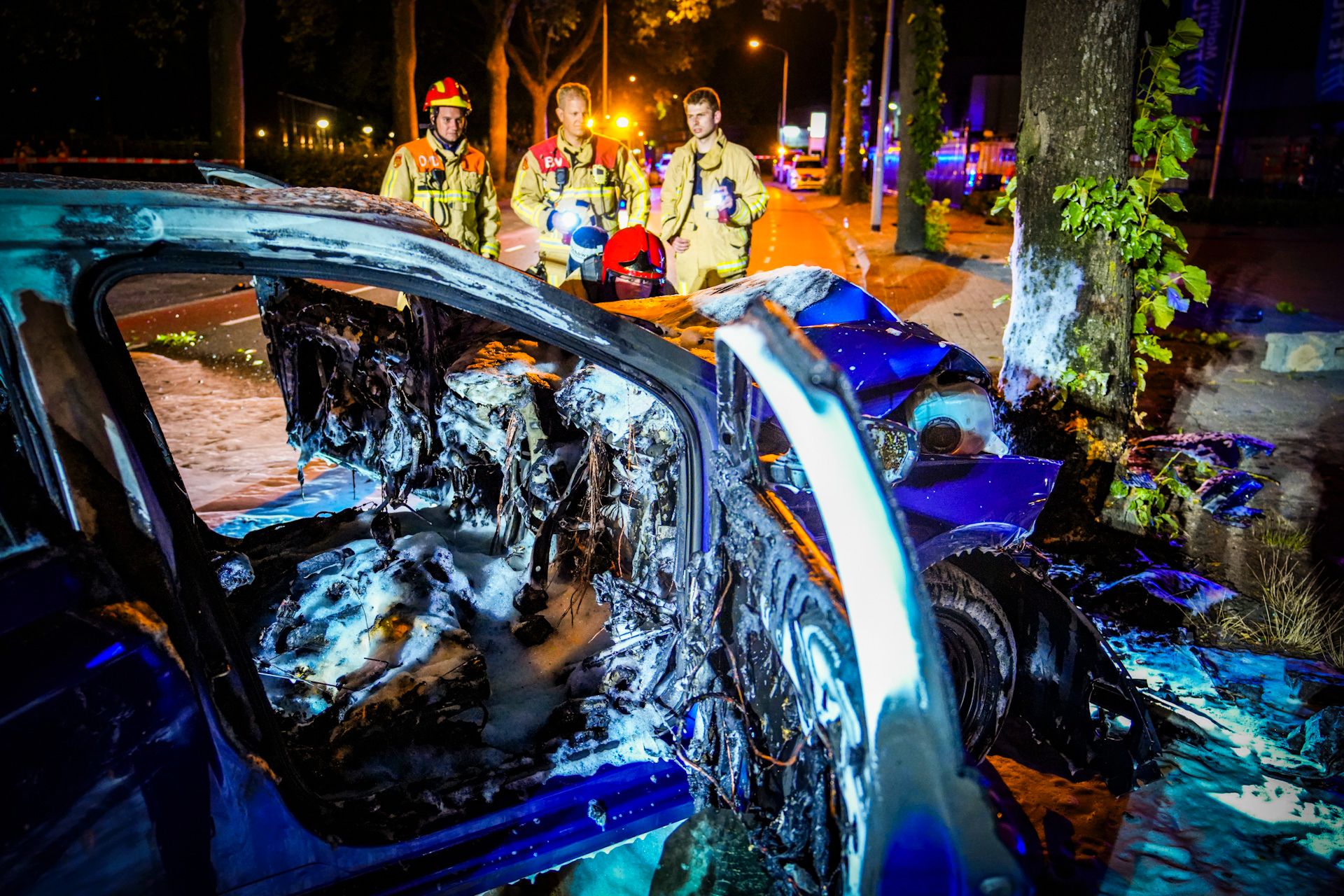 De auto zou met hoge snelheid tegen een boom zijn gereden, kort voor 23.00 uur, om nog onbekende redenen.