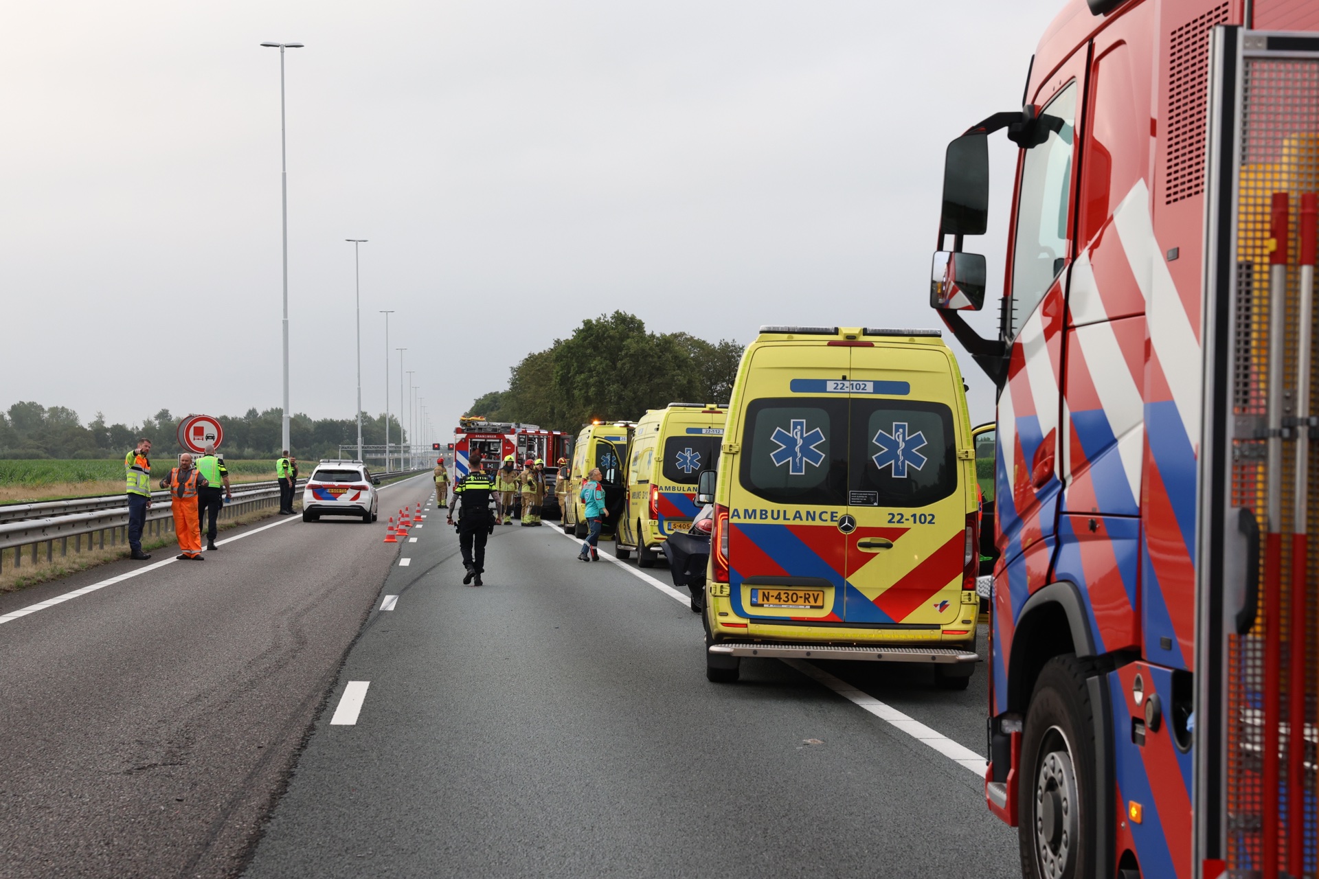 Er is ten minste één persoon met onbekend letsel per ambulance naar het ziekenhuis vervoerd. De in allerijl gealarmeerde traumahelikopter is niet meer ter plaatse geweest. Een andere auto lekte benzine, daar hebben brandweerlieden een opvangbak onder geplaatst.