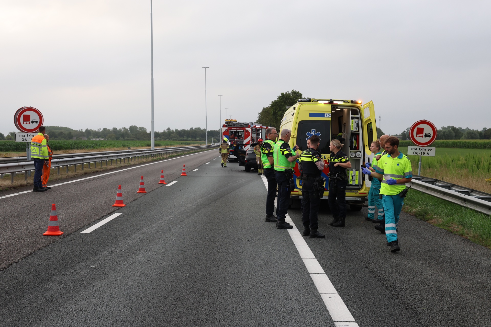 Er is ten minste één persoon met onbekend letsel per ambulance naar het ziekenhuis vervoerd. De in allerijl gealarmeerde traumahelikopter is niet meer ter plaatse geweest. Een andere auto lekte benzine, daar hebben brandweerlieden een opvangbak onder geplaatst.