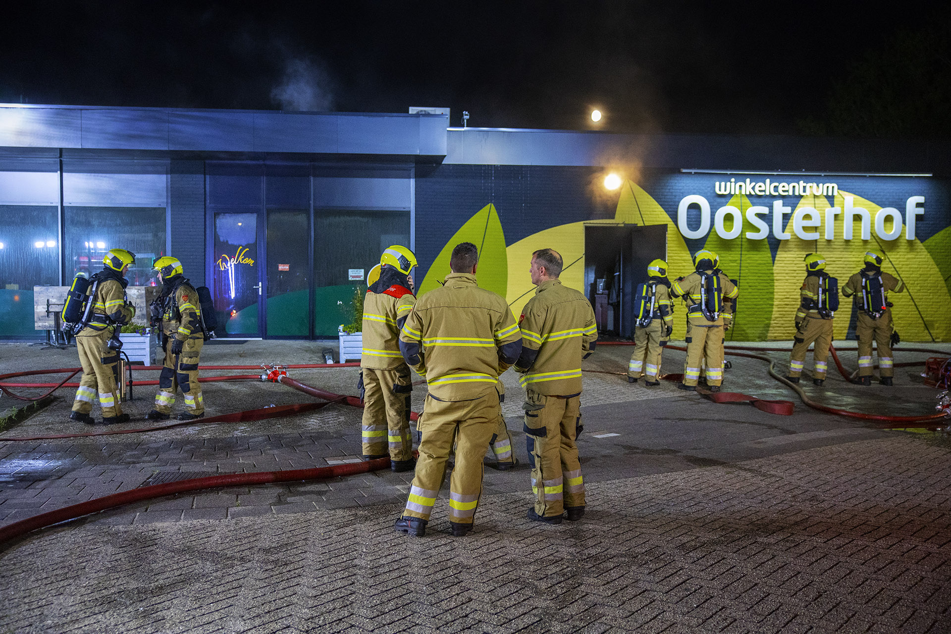 Brand in cafetaria in winkelcentrum, meerdere winkels rookschade