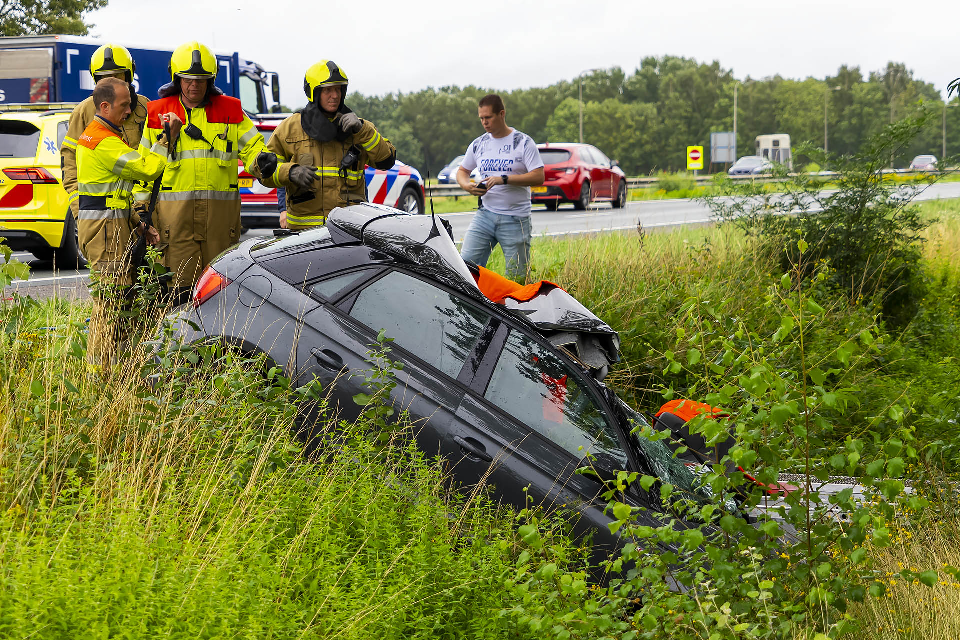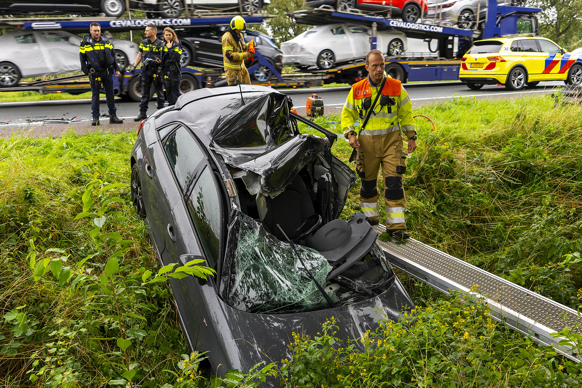 Rond 08.45 uur werden de hulpdiensten grootschalig opgeroepen. Een personenauto belandde door onbekende oorzaak in een sloot, waarbij een persoon bekneld raakte. De brandweer is direct begonnen met het bevrijden van het slachtoffer, en ook de traumahelikopter verleende assistentie. De bestuurder is uiteindelijk door de brandweer bevrijd. Er waren meerdere politie-eenheden, ambulances, een traumahelikopter en brandweer aanwezig om hulp te bieden. Vanwege de inzet van de hulpdiensten is er één rijbaan afgesloten, wat resulteerde in langzaam rijdend verkeer.