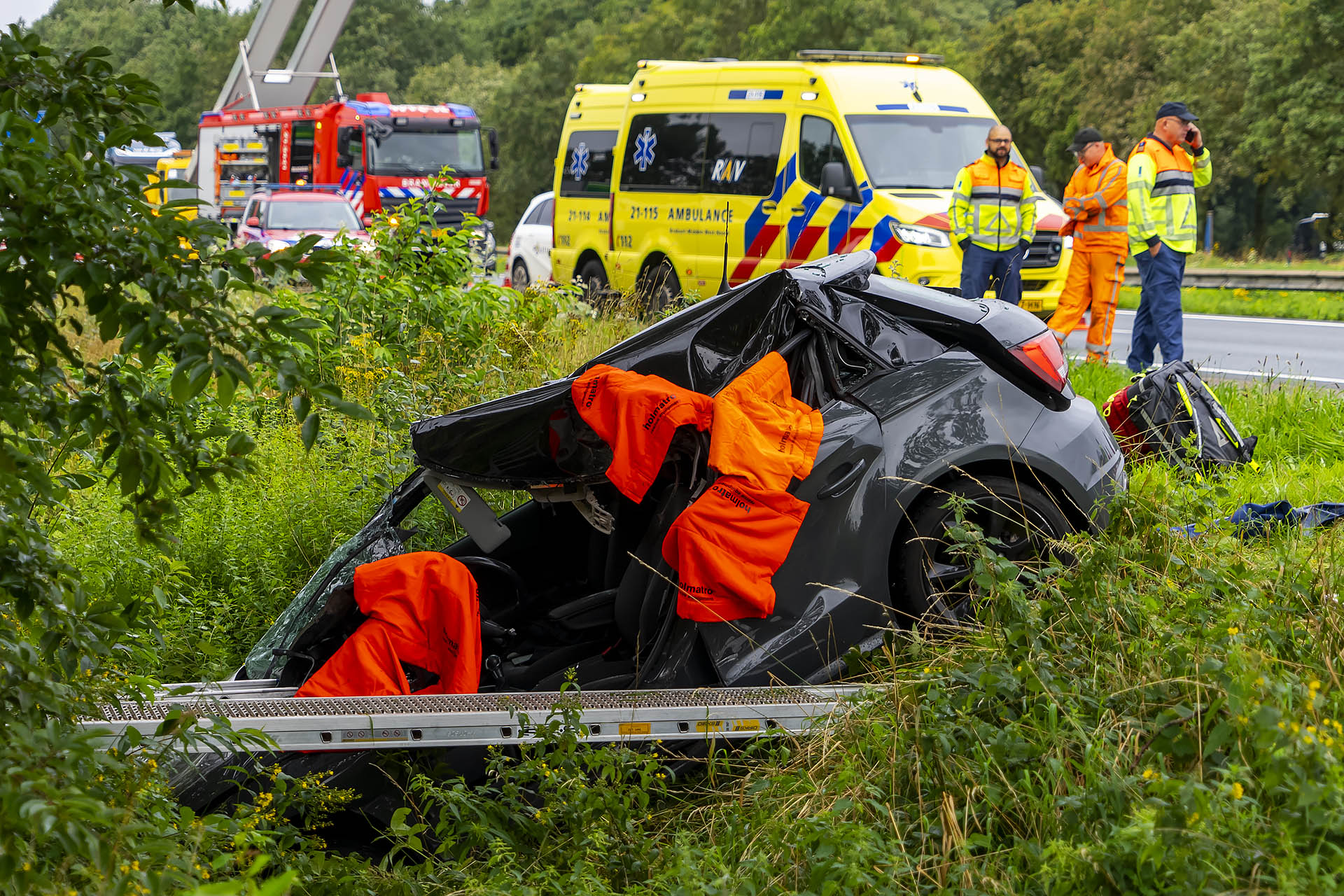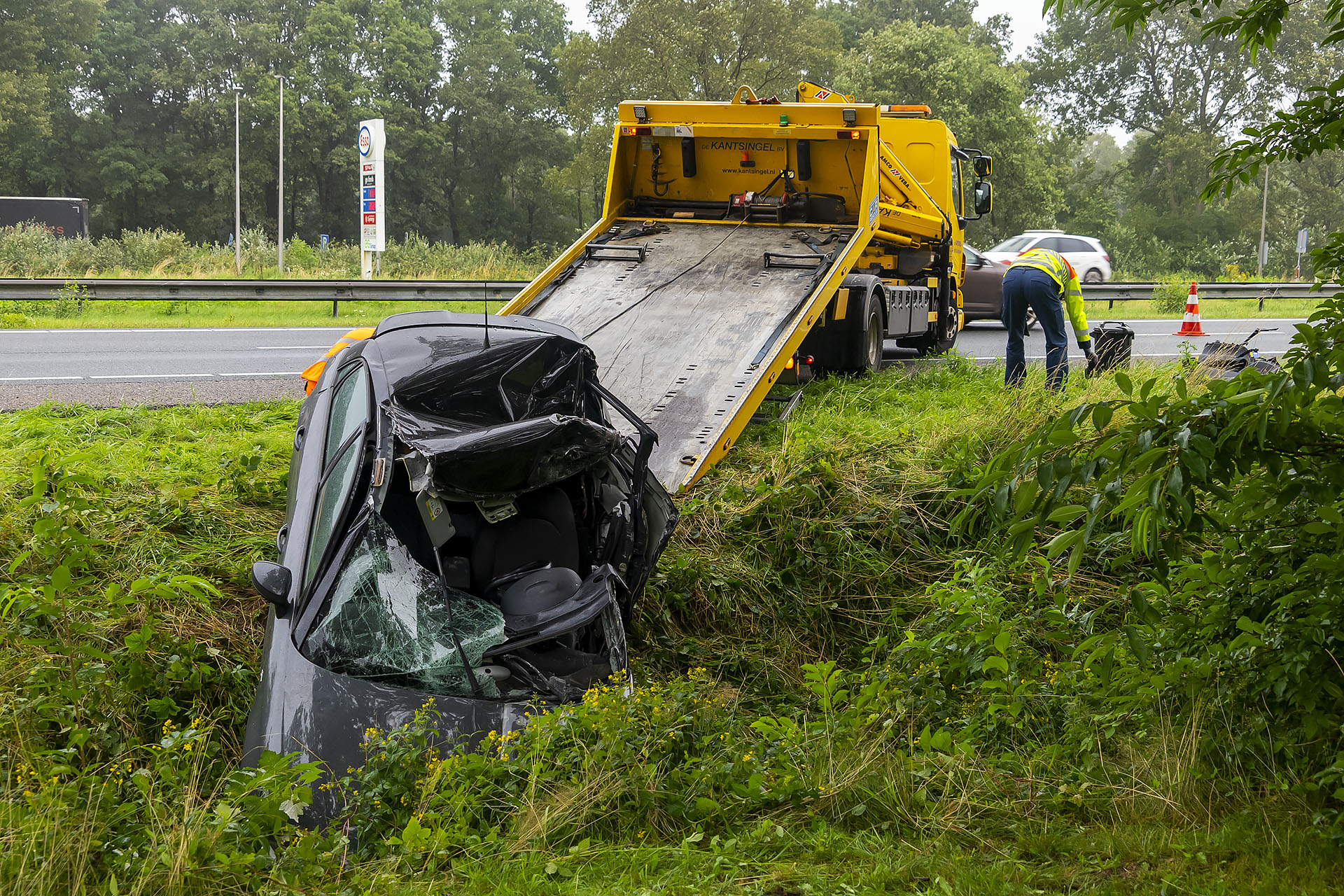 Een bergingsbedrijf zal de auto wegslepen. De oorzaak van het ongeval wordt momenteel nog onderzocht.