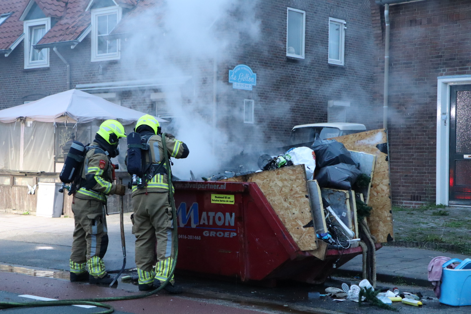 De politie sloot een deel van de straat af en de brandweer bluste de brandende bouwcontainer. Bij de brand kwam veel rook vrij.