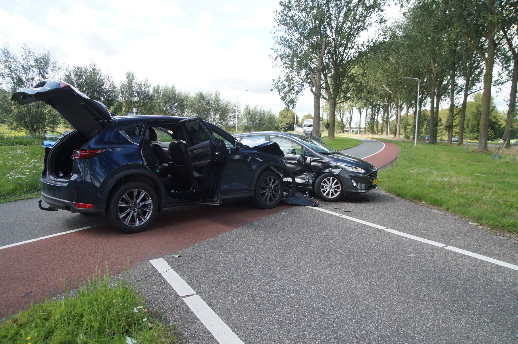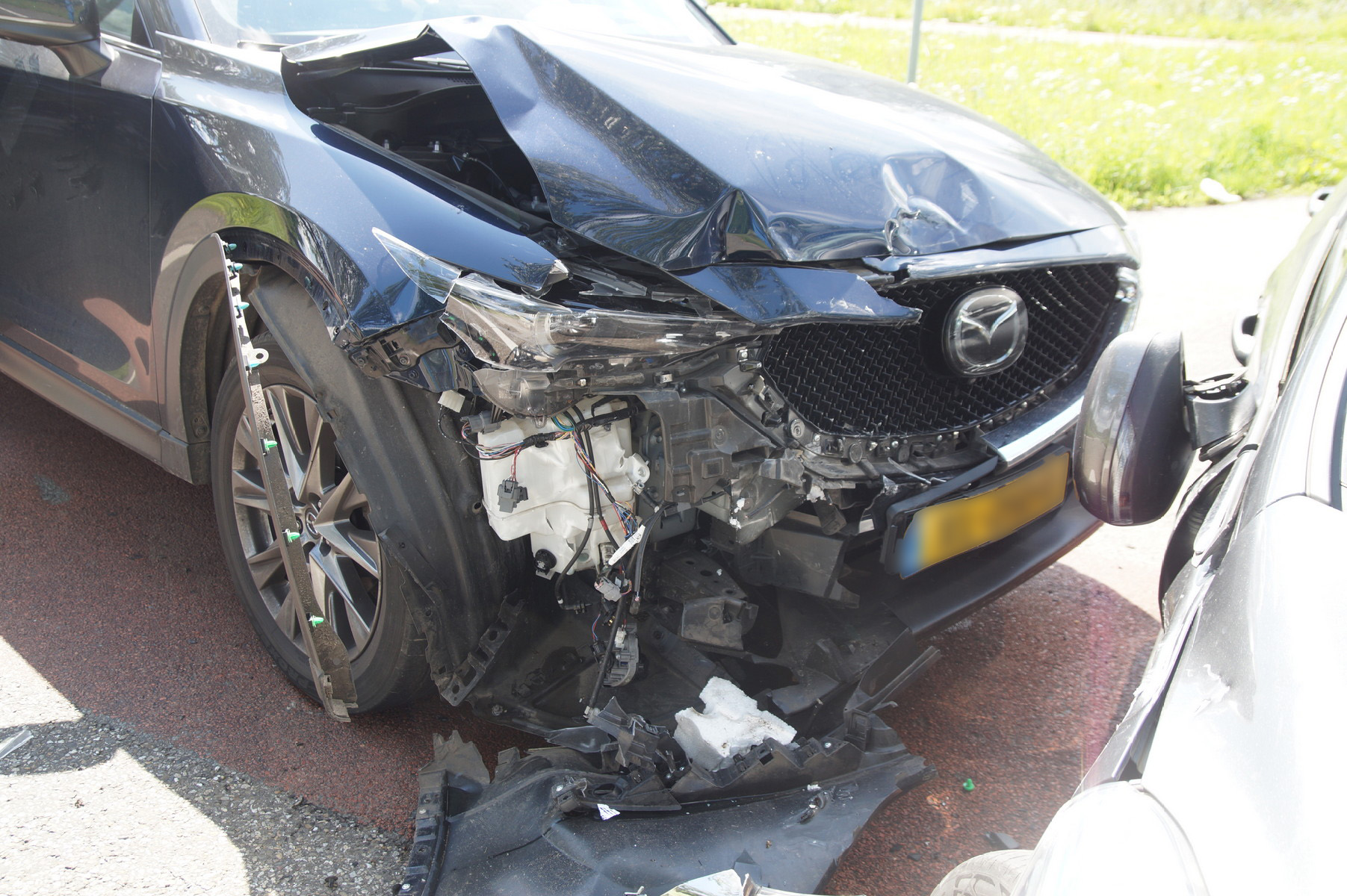 Twee auto’s zijn door onbekende oorzaak hard op elkaar gebotst. Beide auto’s raakten zwaar beschadigd en de airbags zijn geactiveerd. Niemand raakte gewond, maar beide bestuurders zijn flink geschrokken.