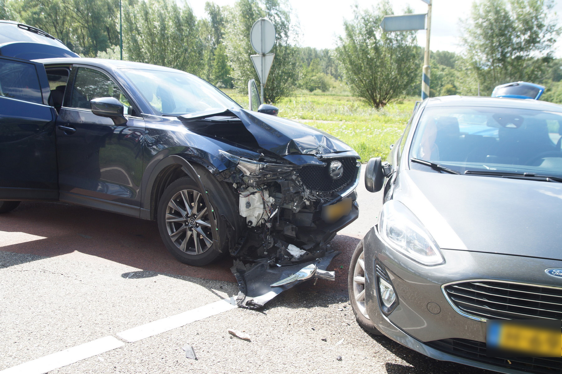 Voertuigen botsen hard op elkaar, veel schade en geschrokken bestuurders