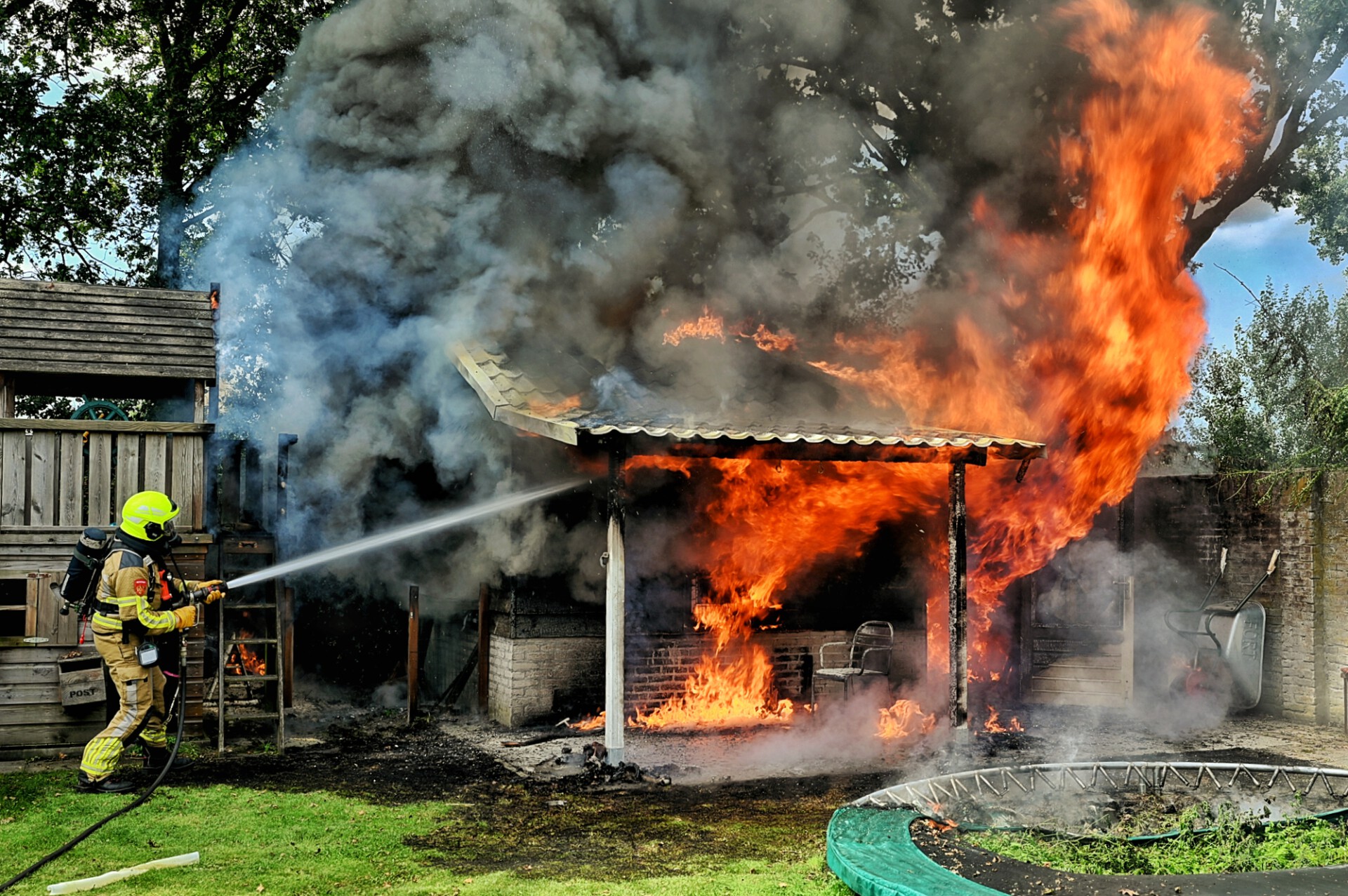 De brandweer arriveerde met spoed op de locatie en begon onmiddellijk met bluswerkzaamheden. Echter moet de schuur volledig als verloren worden beschouwd.