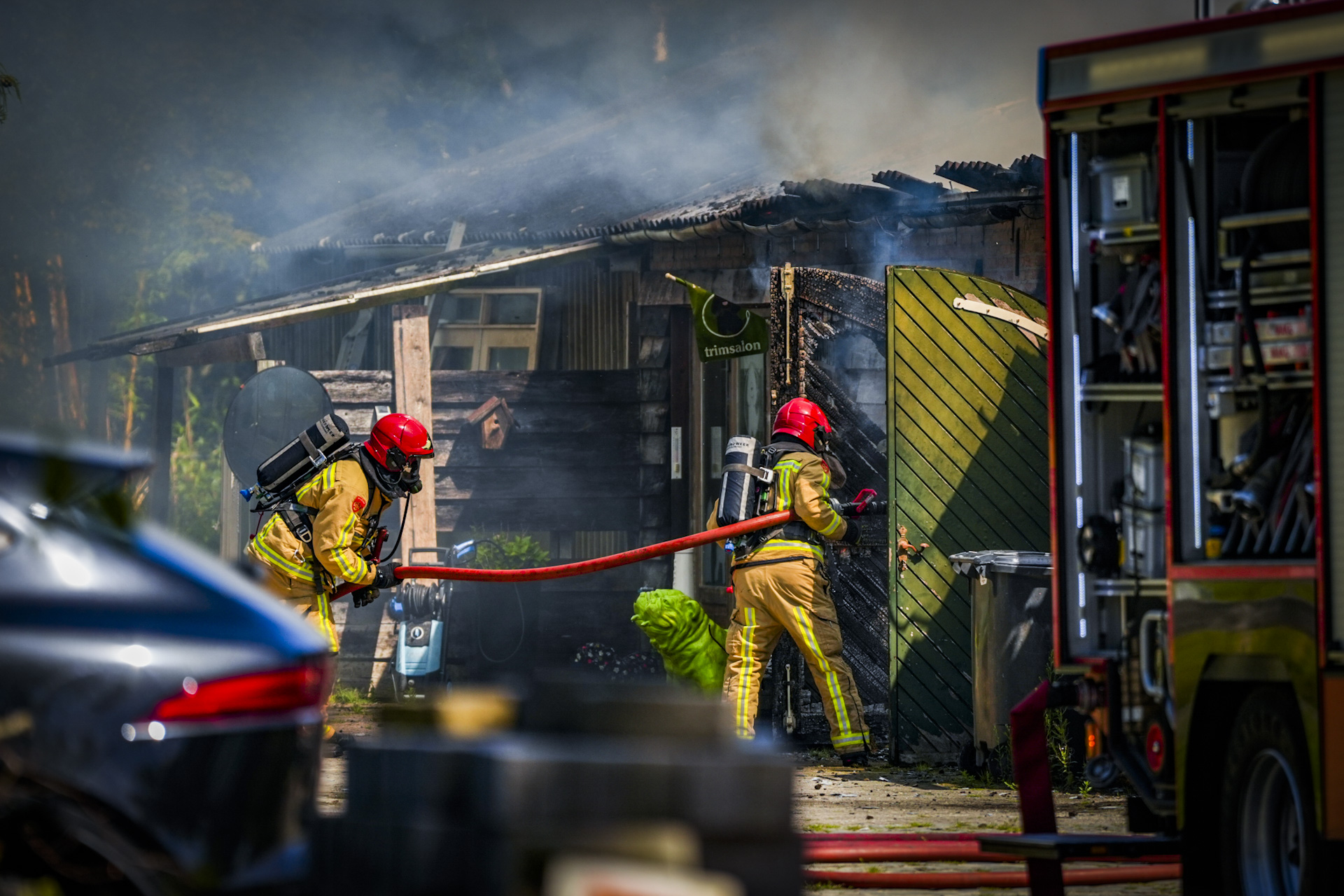 Loods met trimsalon verwoest door grote brand