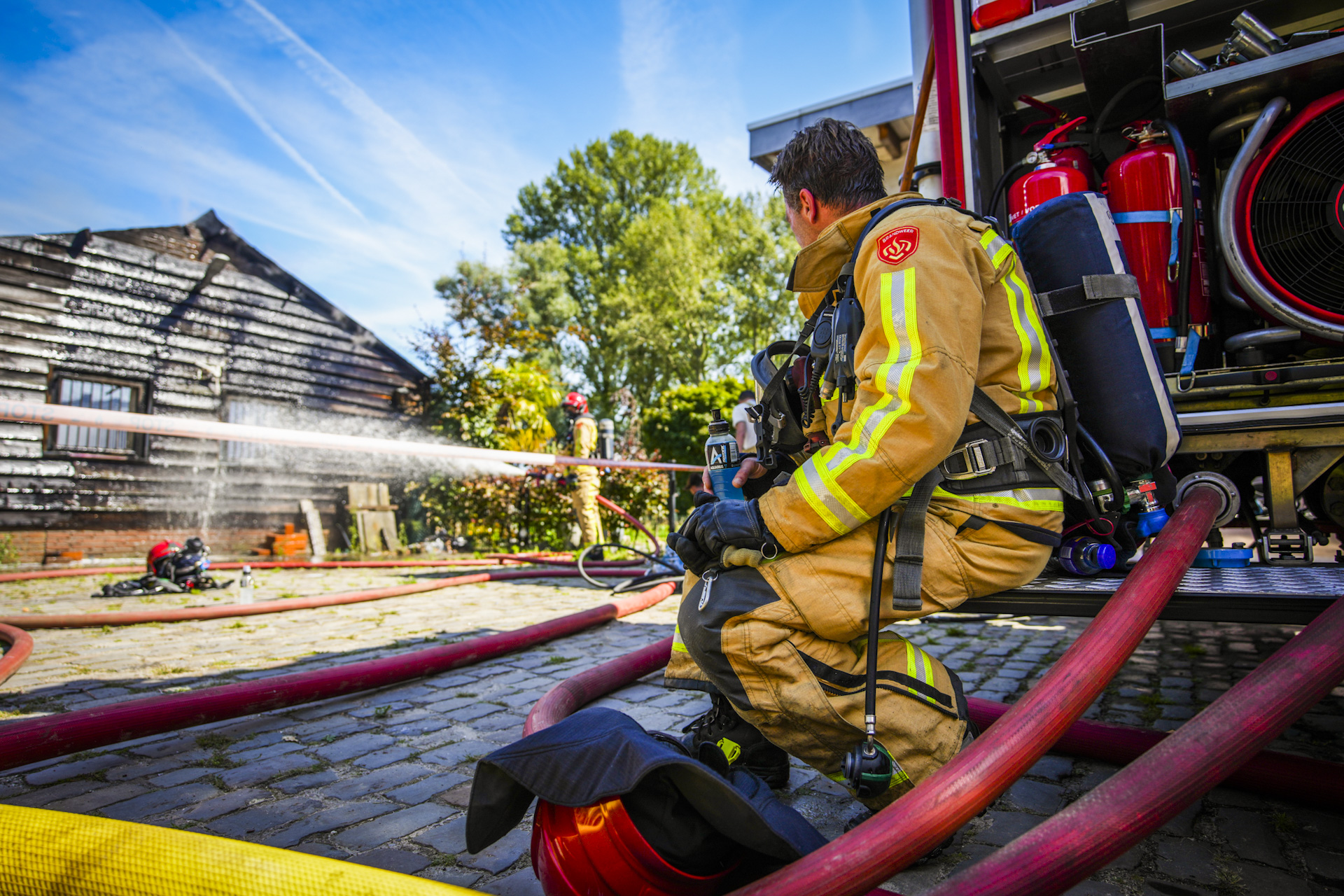 Een half uur later werd wel het sein brand meester gegeven. Vanwege veiligheidszorgen worden gasflessen nauwlettend in de gaten gehouden. De aanwezigheid van asbest wordt eveneens onderzocht. De woordvoerder verklaarde: “We vermoeden sterk dat er asbest in het gebouw aanwezig was. We onderzoeken of er daadwerkelijk asbestvervuiling is opgetreden en zo ja, waar precies.” Tijdens de brand vielen delen van het dak naar beneden.