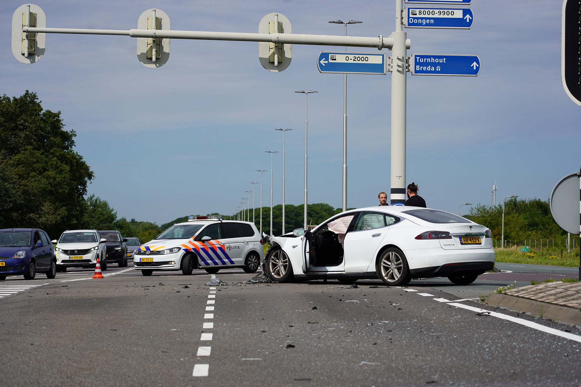Ter hoogte van de Gesworenhoekseweg kwamen twee auto’s met elkaar in botsing. Een van de auto’s kwam 200 meter verderop tot stilstand. Een automobiliste en haar zoontje werden in een ambulance behandeld.