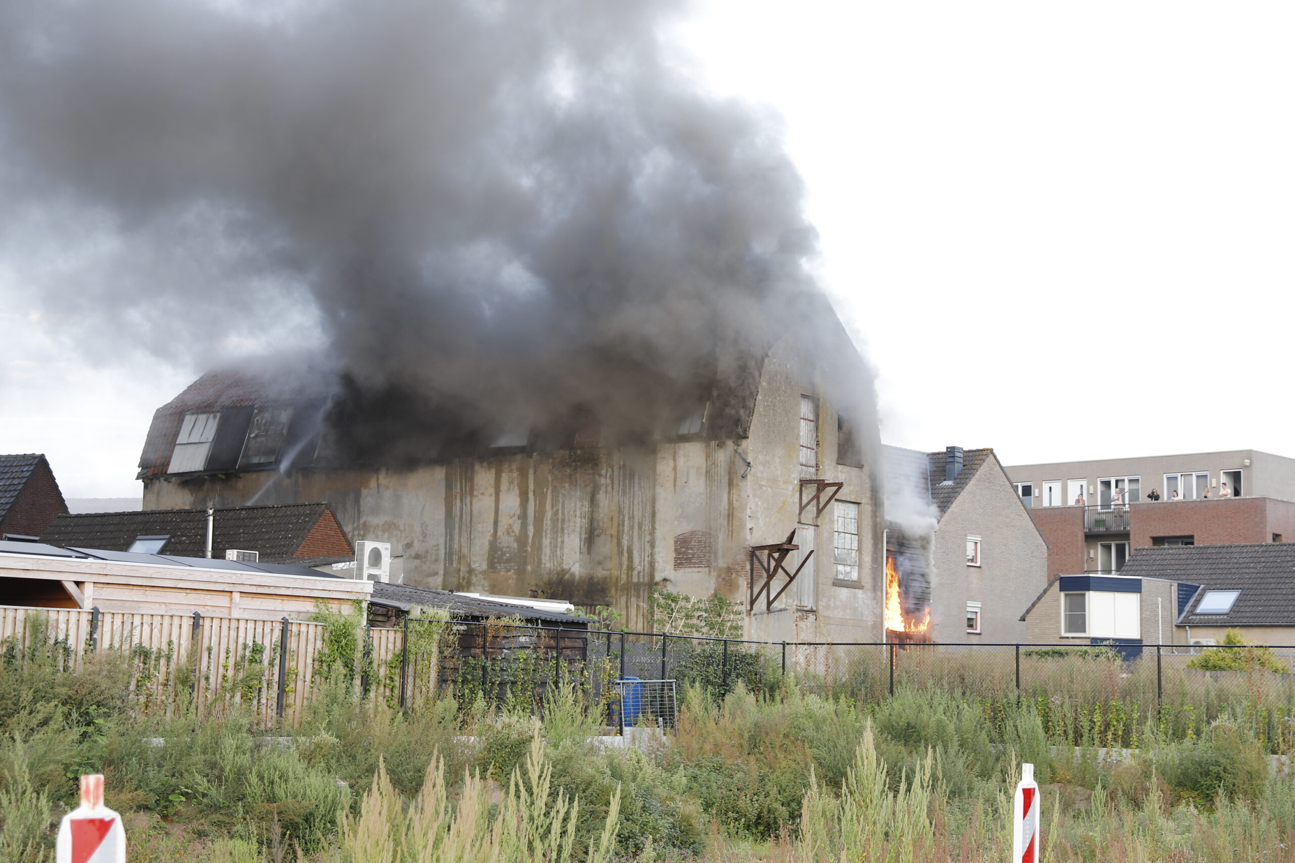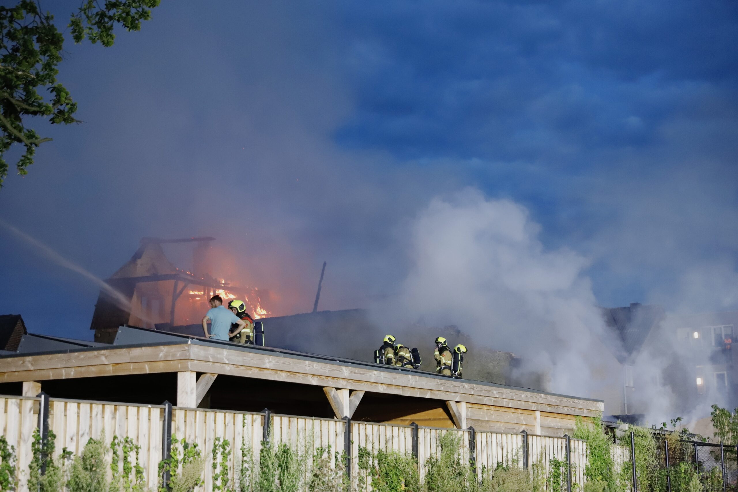 Eventuele schade aan deze panden en de oorzaak van de brand zullen later worden beoordeeld.