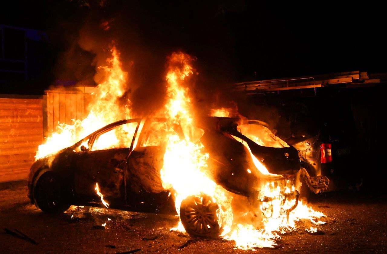 De brand sloeg over naar een bestelbus. De brandweer had grote moeite om de brand te blussen. De voertuigen raakten zwaar beschadigd.